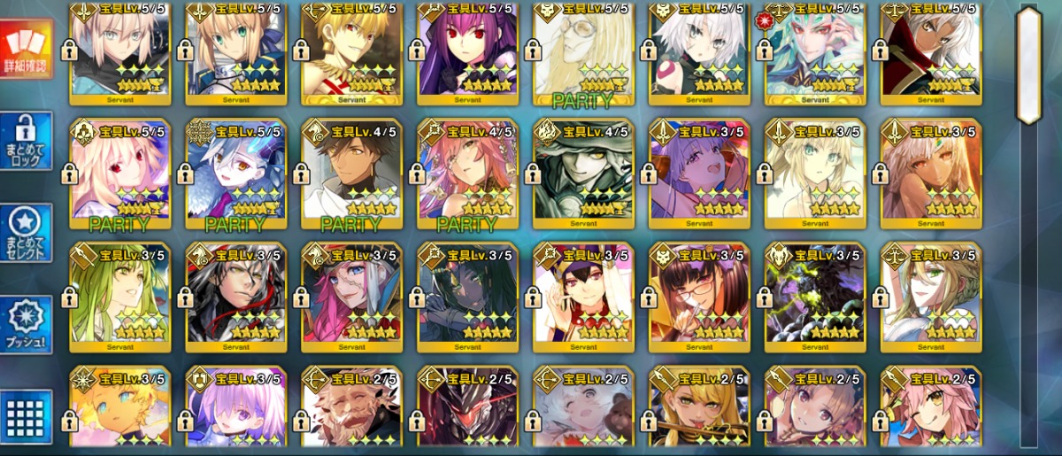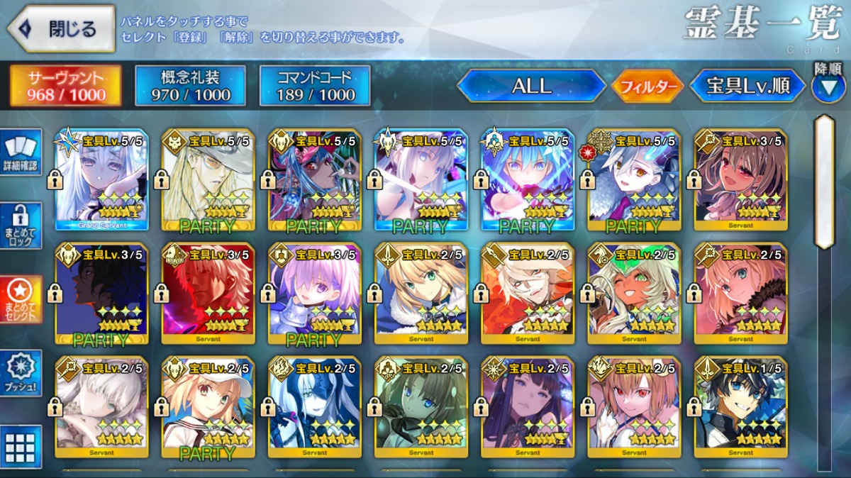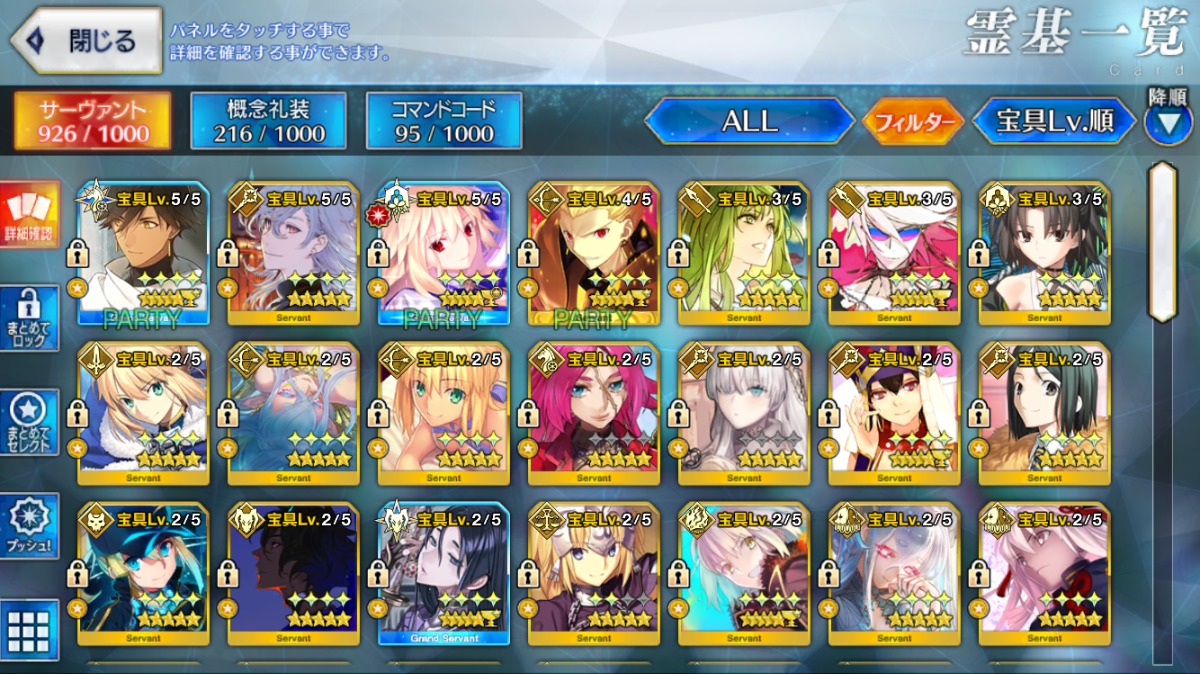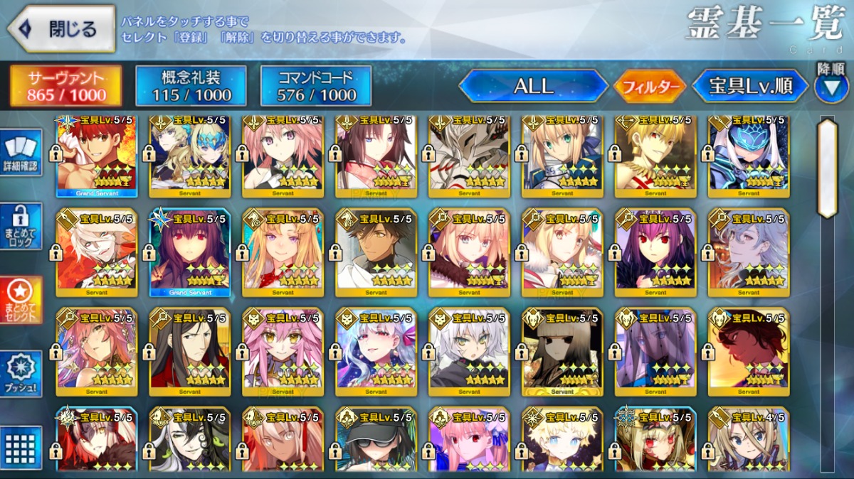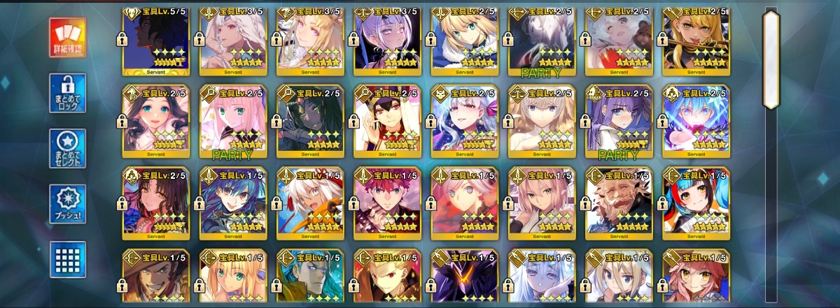 重複分は宝具強化に使用しており、累計入手数=★5サーヴァントの宝具レベル合計値となります。