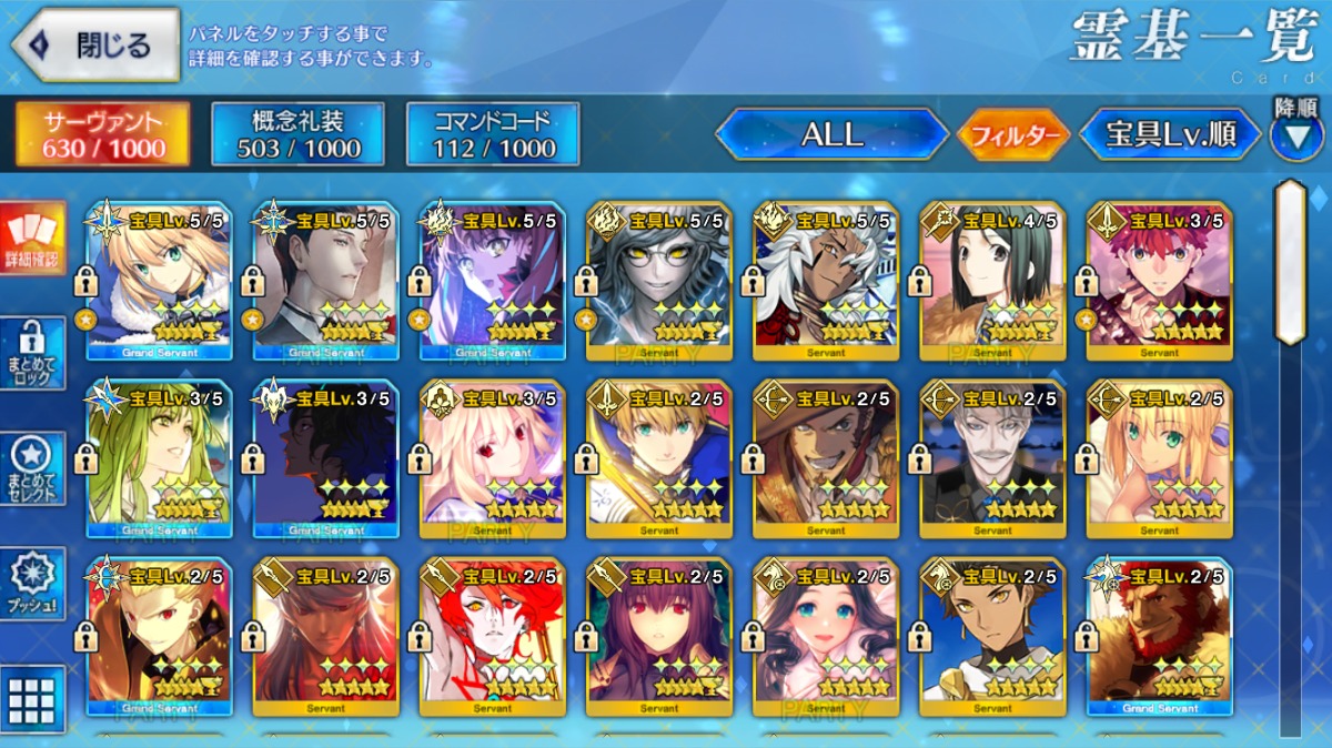 累計入手数=★5サーヴァントの宝具レベル合計値となります。