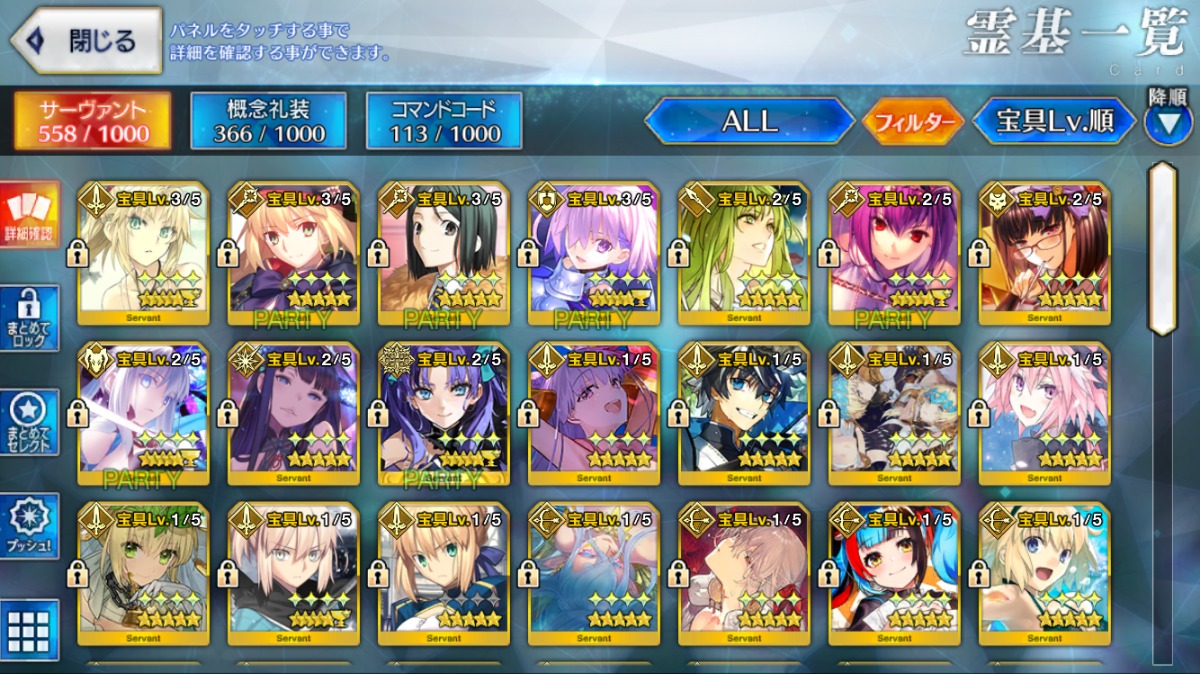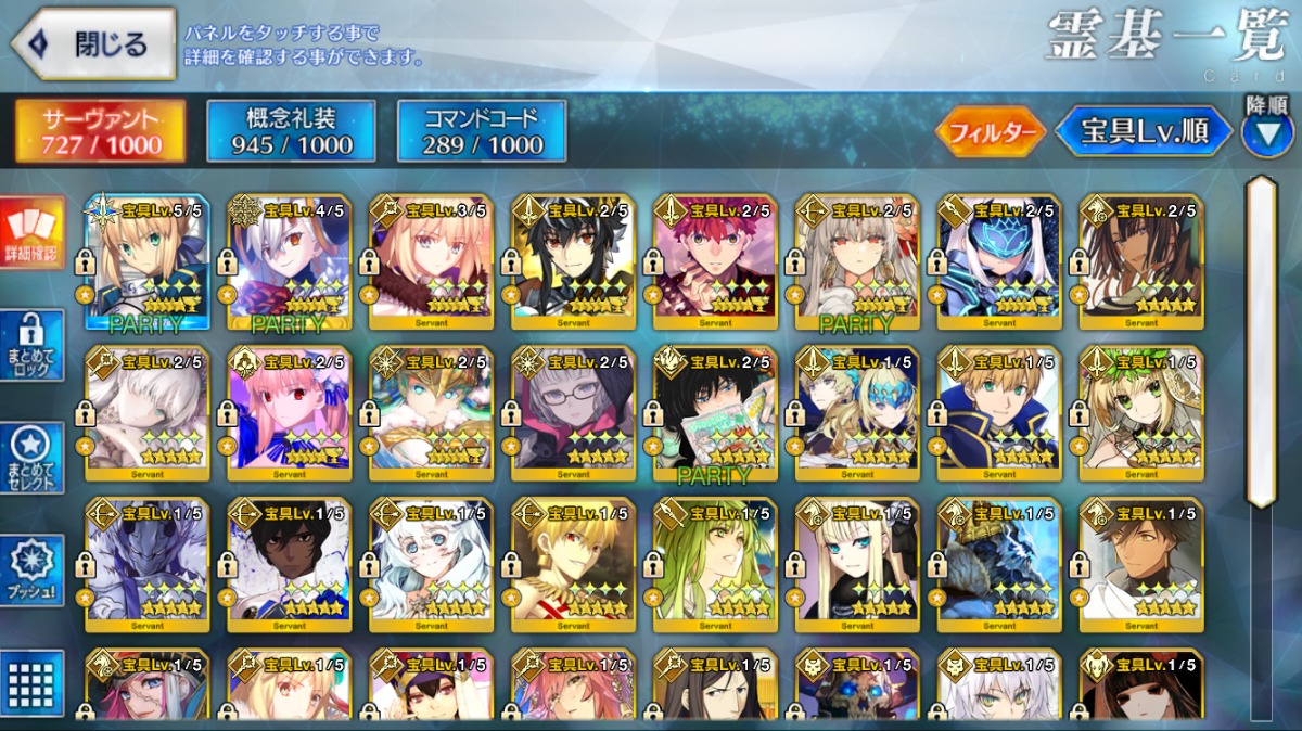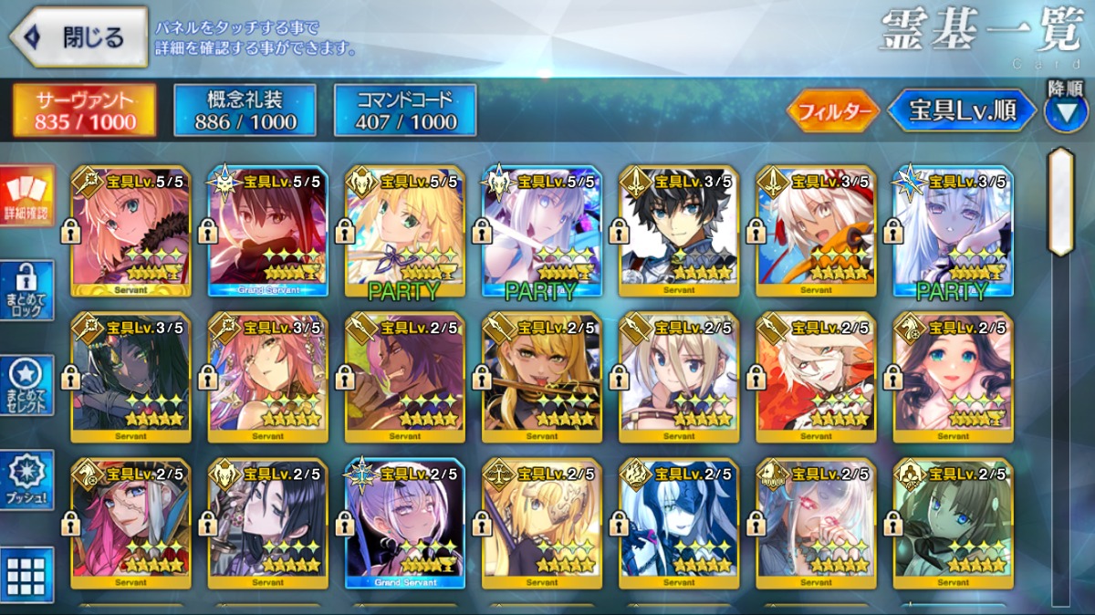 重複分は宝具強化に使用しており、累計入手数=★5サーヴァントの宝具レベル合計値となります。