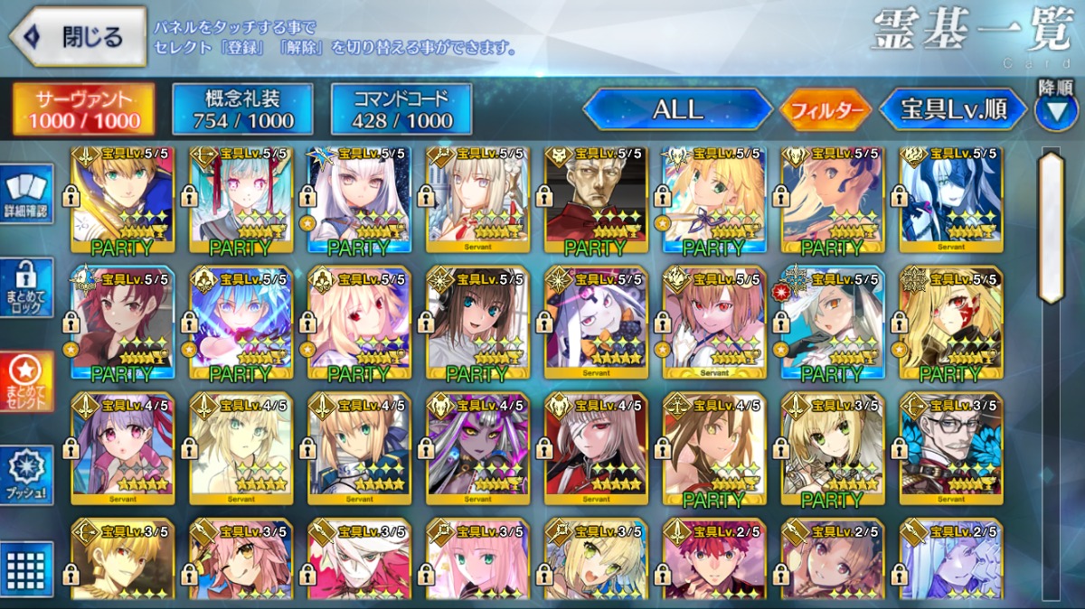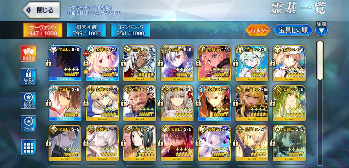 重複分は宝具強化に使用しており、累計入手数=★5サーヴァントの宝具レベル合計値となります。
