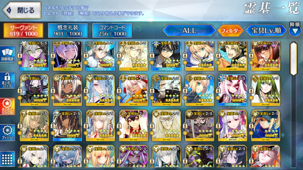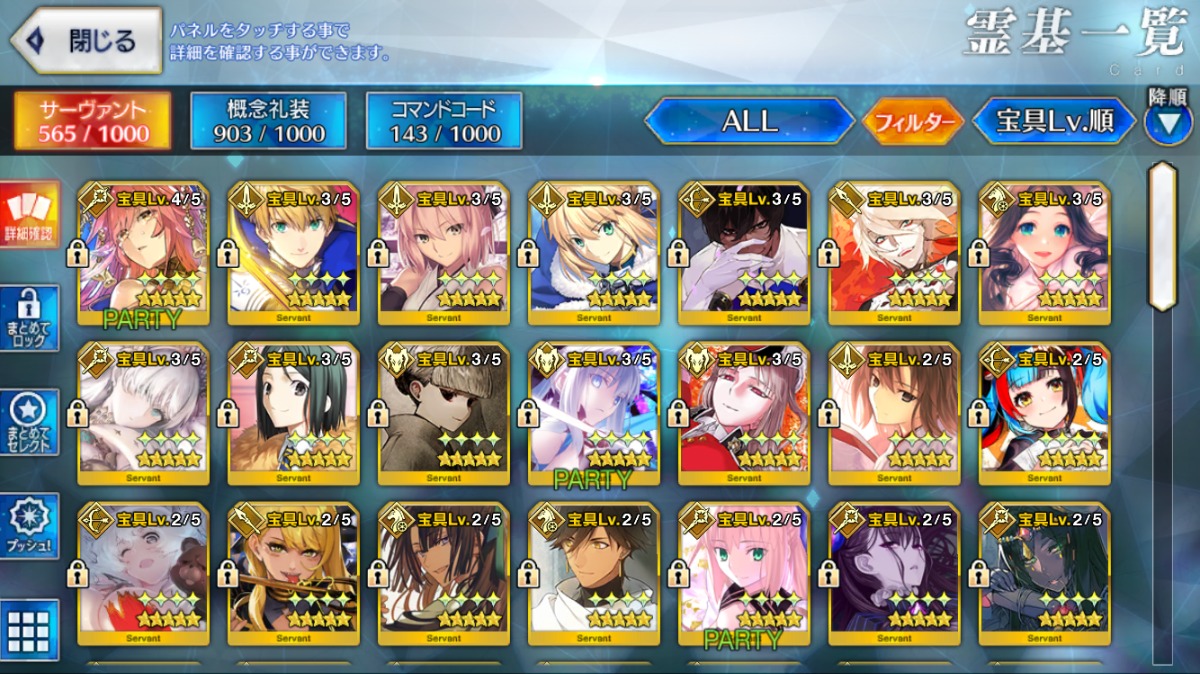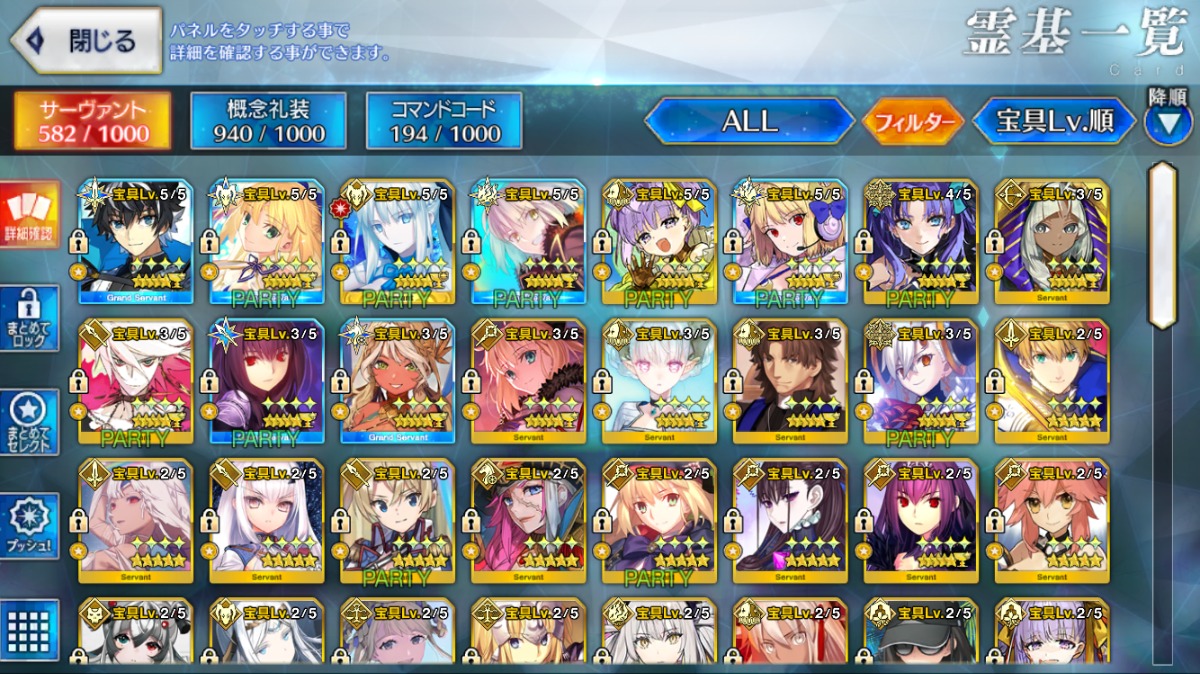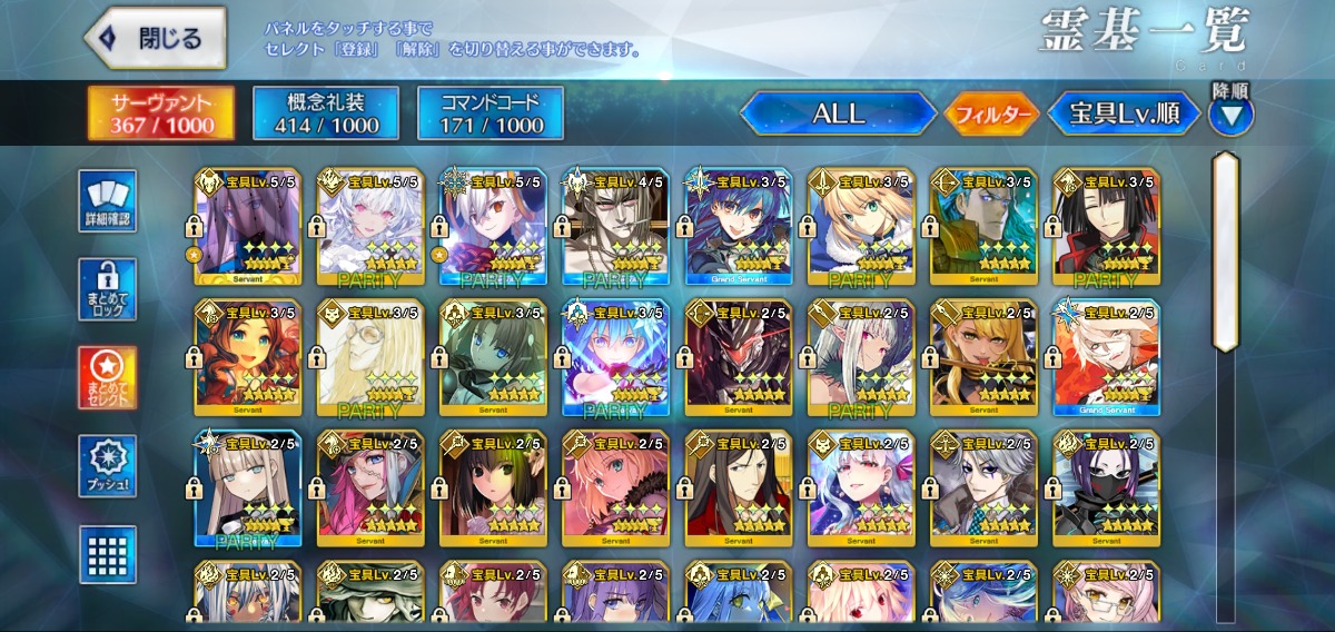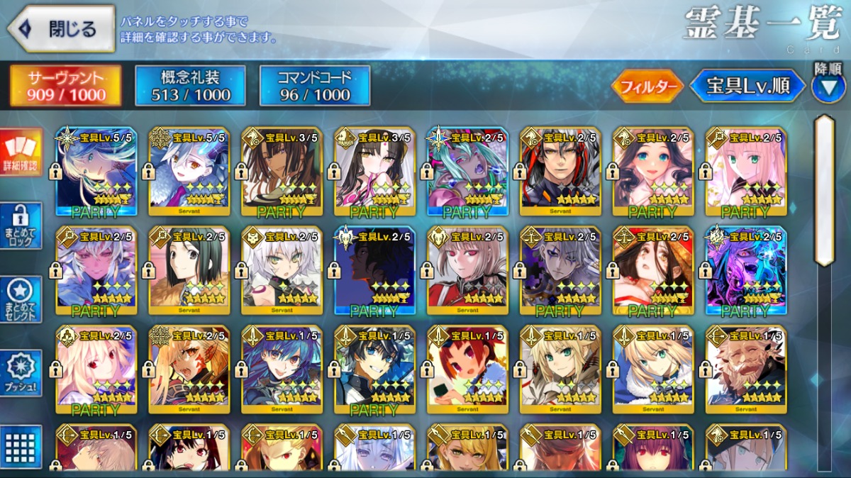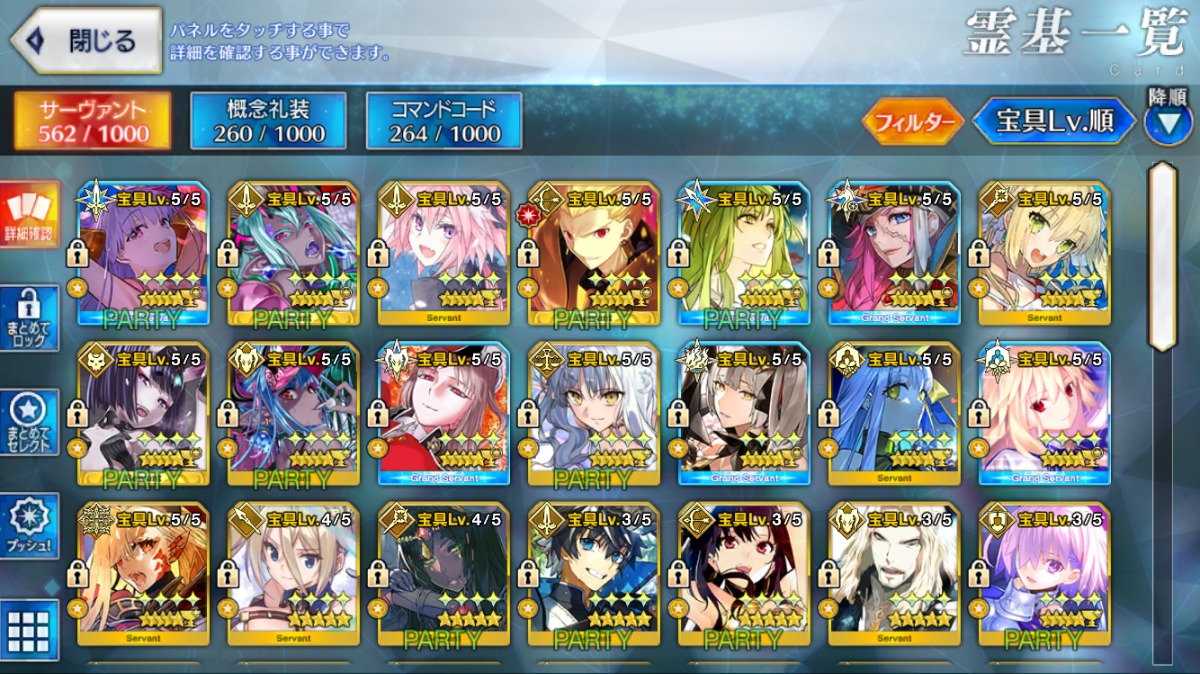 重複分は宝具強化に使用しており、累計入手数=★5サーヴァントの宝具レベル合計値となります。