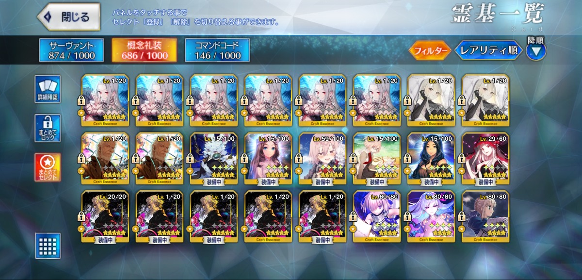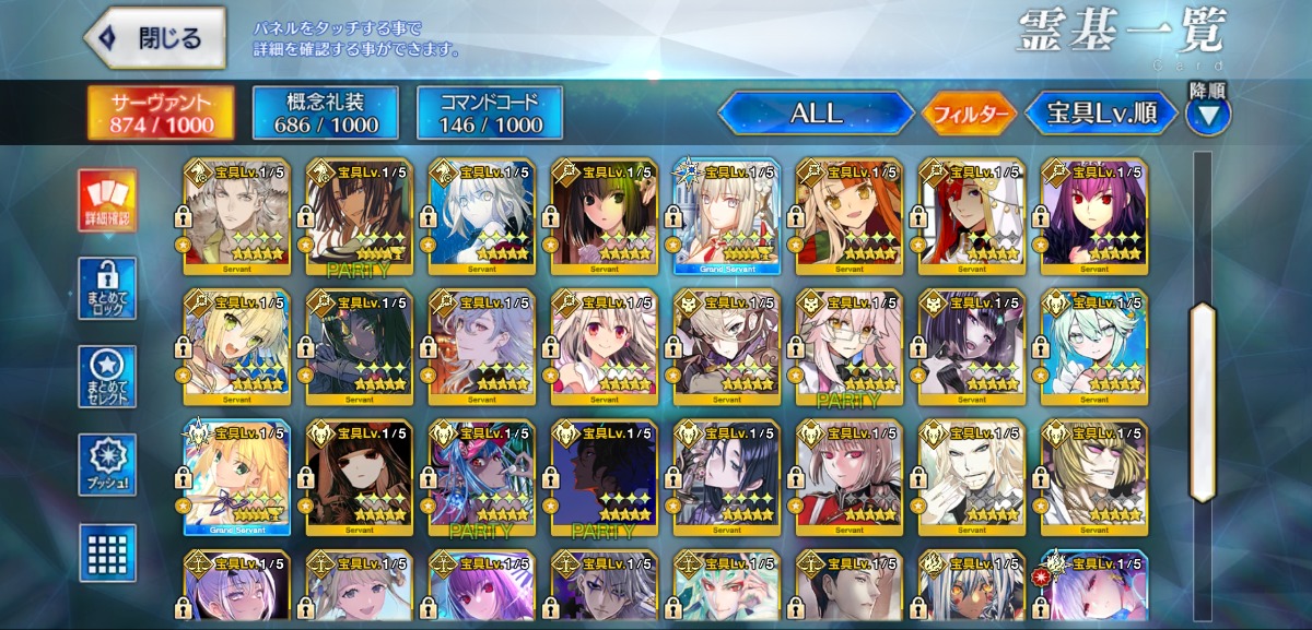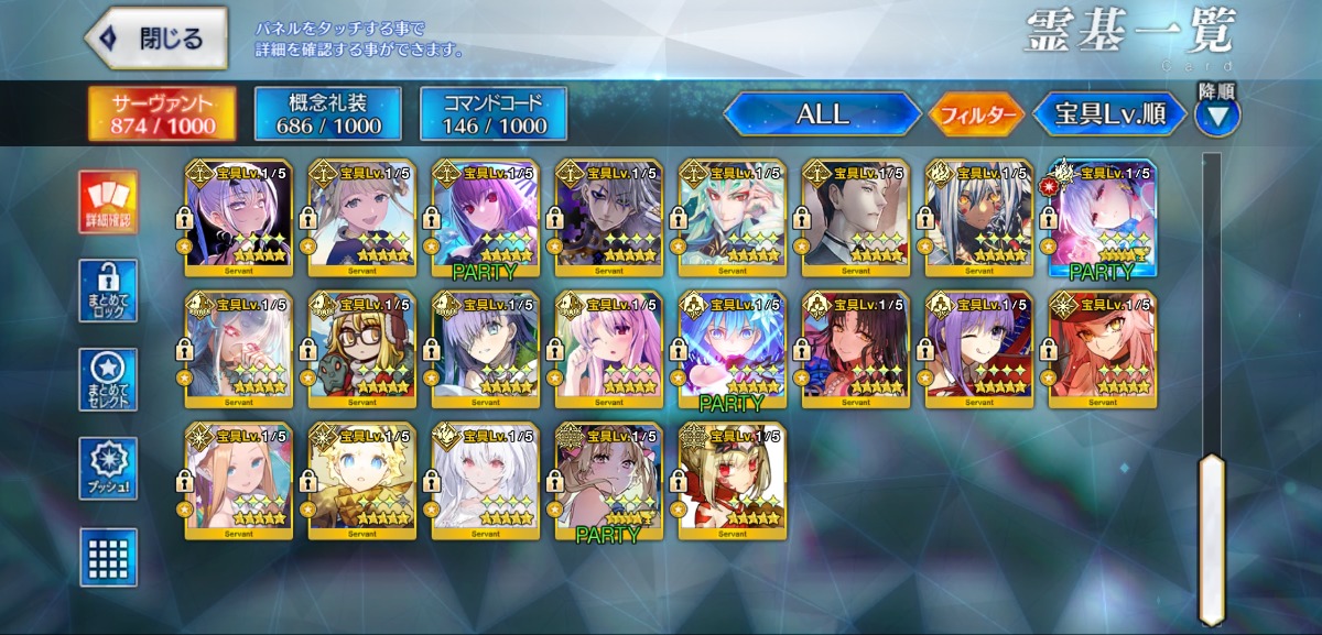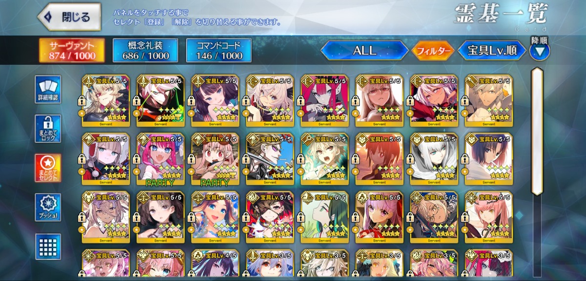 U-オルガマリー宝具5・オベロン宝具3・モルガン宝具2・ログレスなど所持