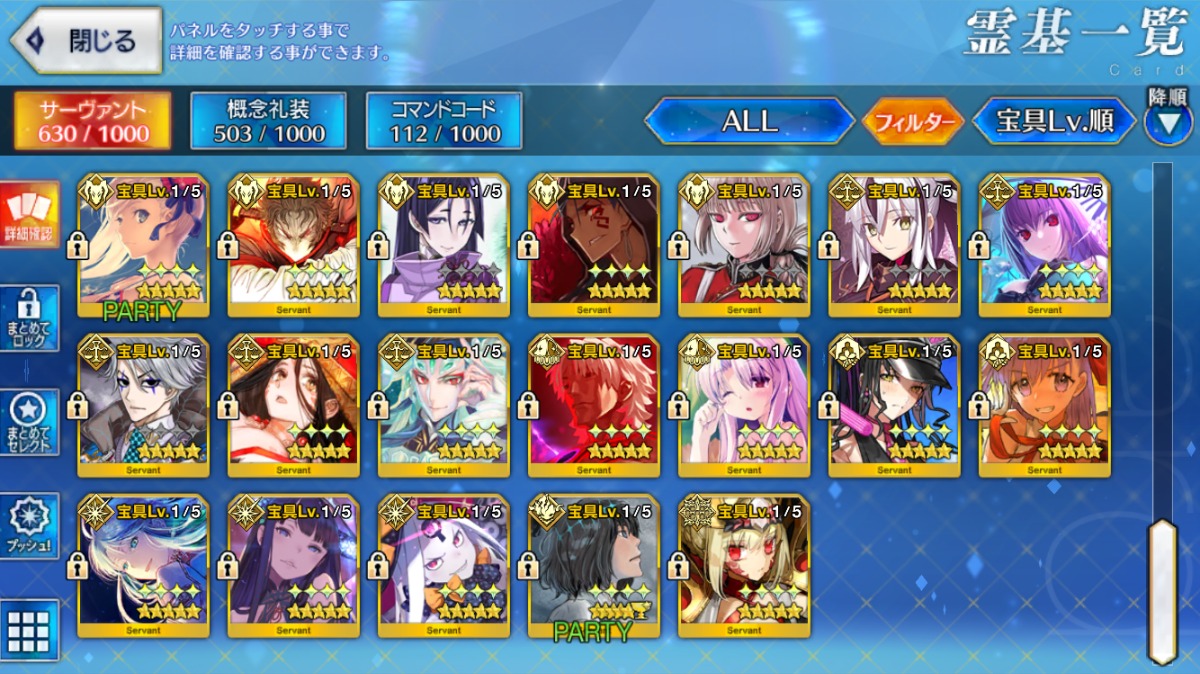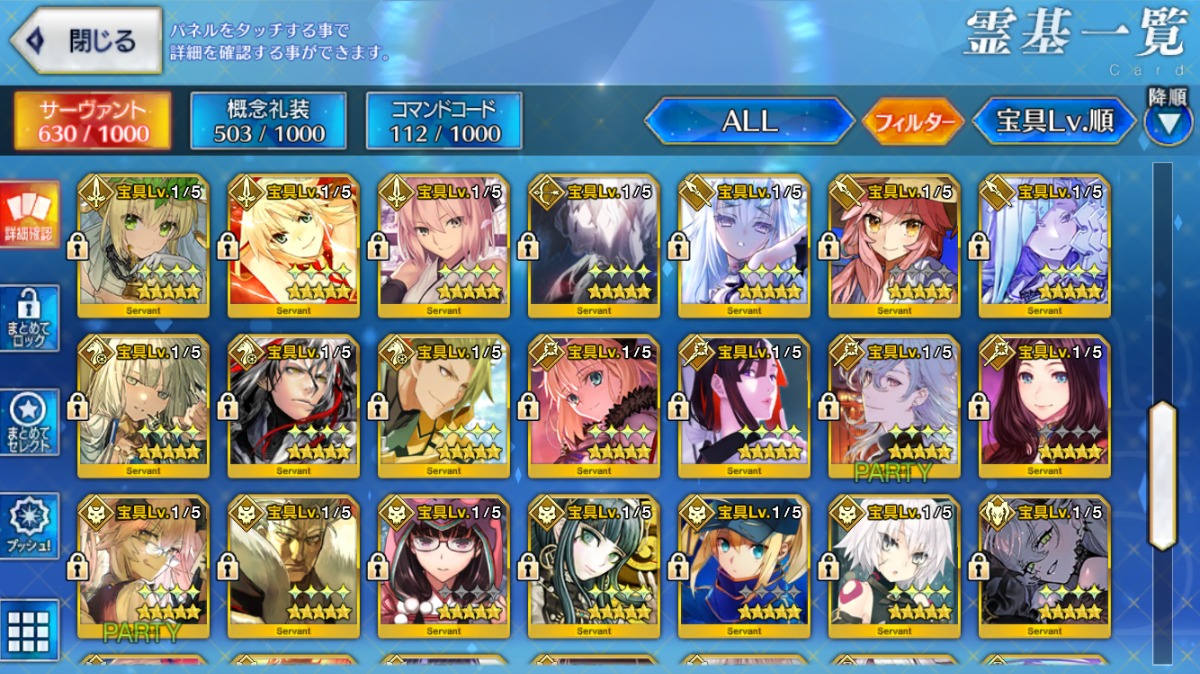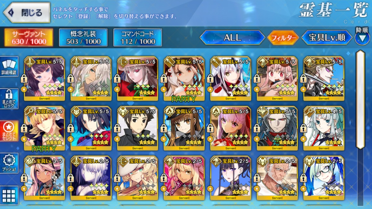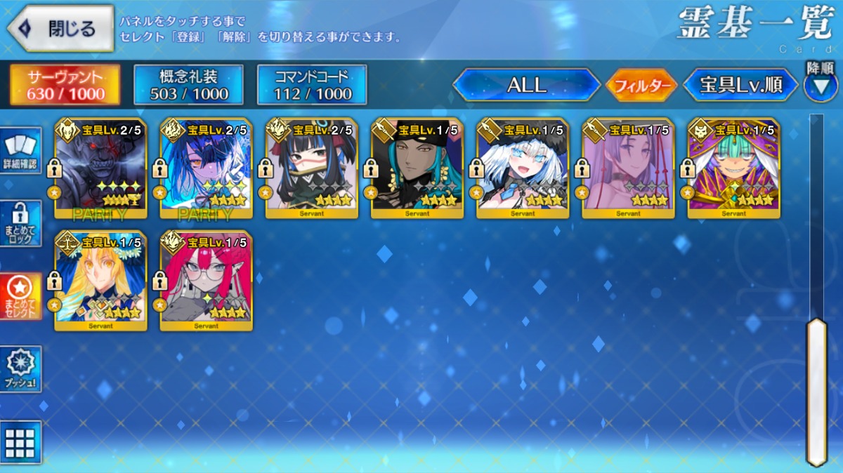 Sイシュタル宝具5・アルクェイド宝具3・U-オルガマリー宝具2など所持