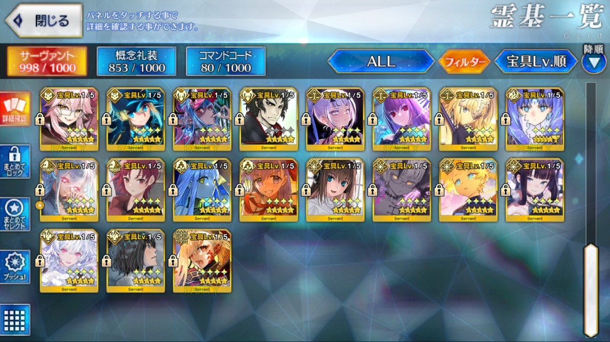 【カズラドロップ・モルガン】宝具5・U-オルガマリー宝具2・ログレスなど所持