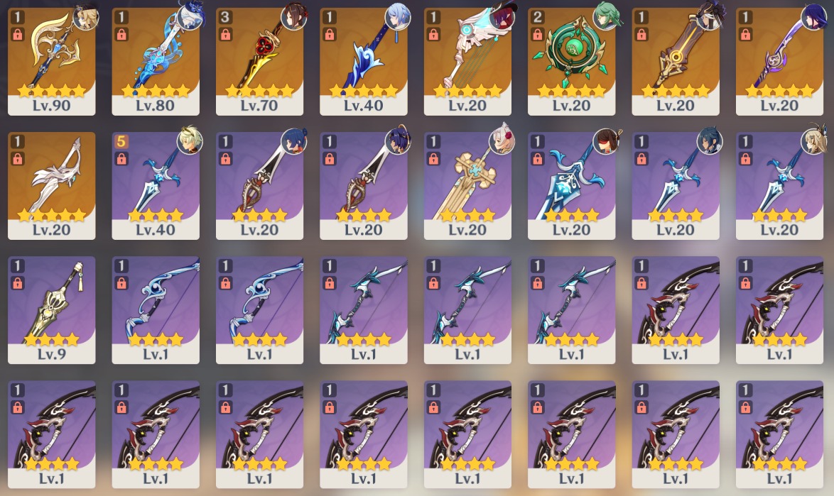 | ★5武器 所持数 | 9個 |