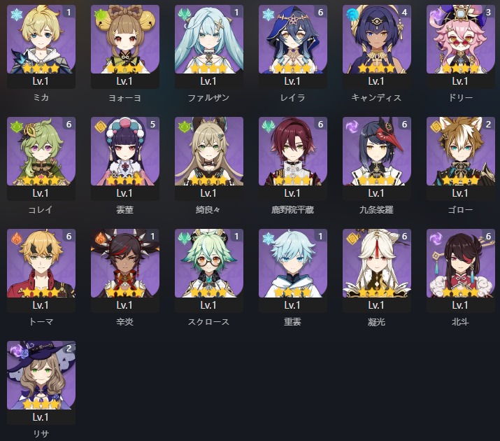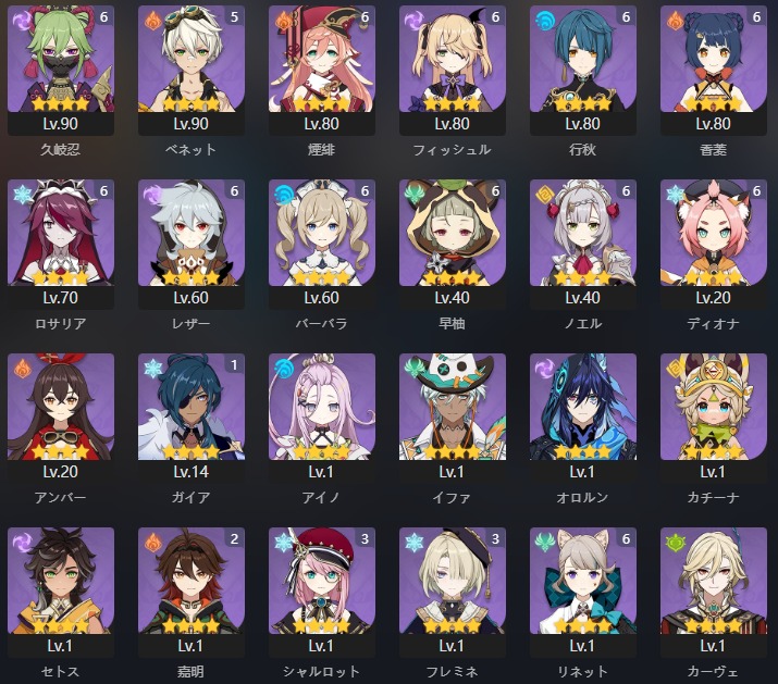 夜蘭 完凸・ナヒーダ 2凸・フリーナ 1凸・ヌヴィレット 1凸など所持