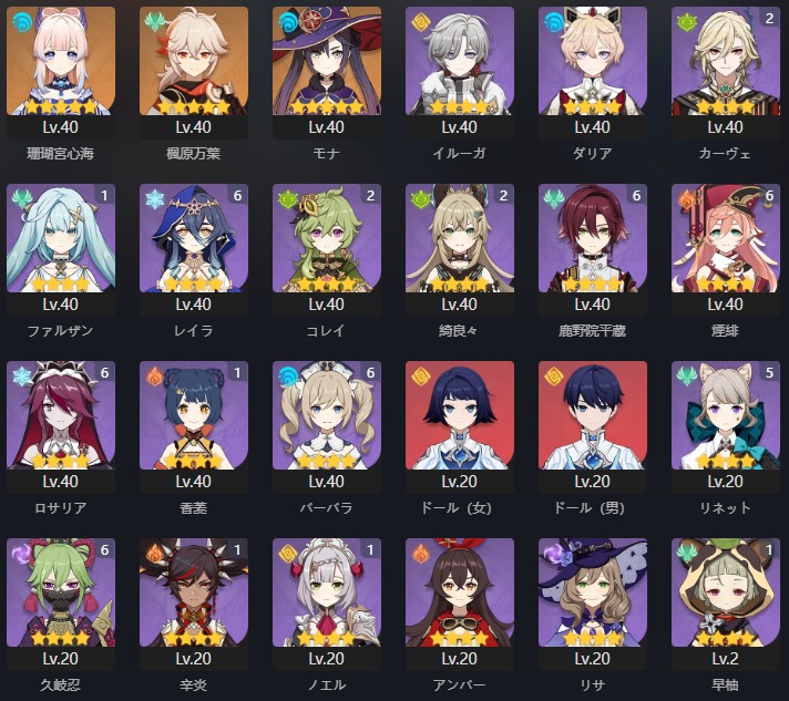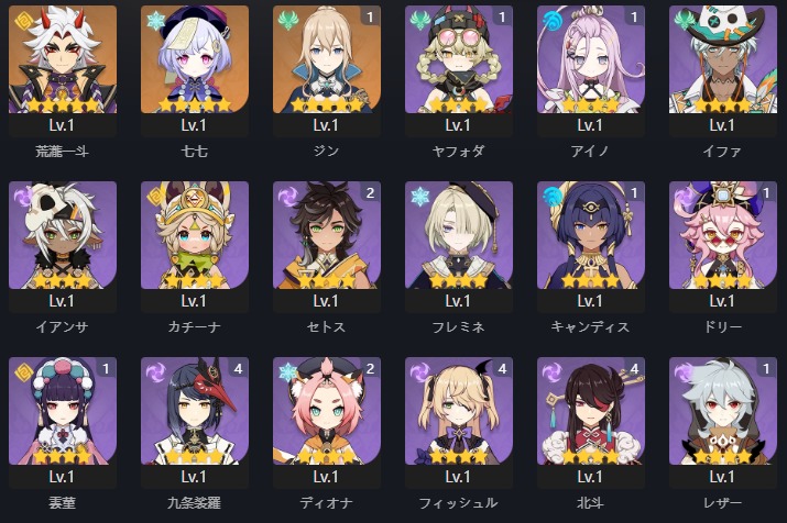コロンビーナ・フリーナ・ナヒーダ・ヌヴィレット・キィニチなど所持