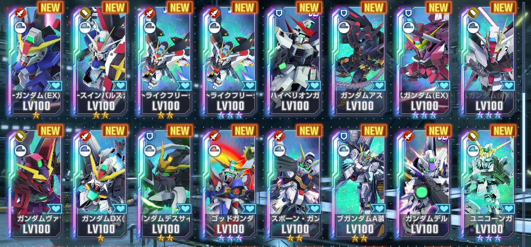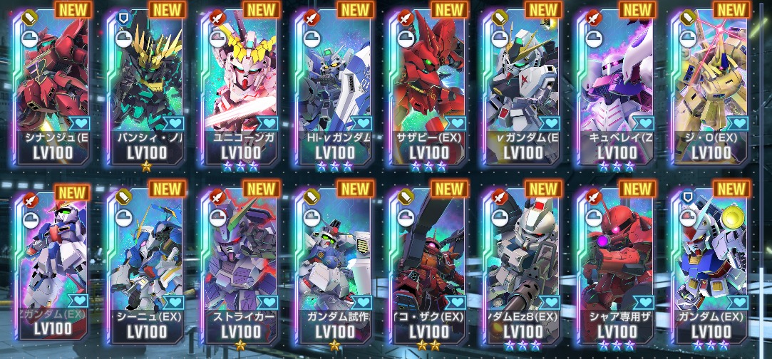 完凸ゴッドガンダム・完凸キャリバーン(最終決戦時)・完凸Hi-νガンダムなど所持