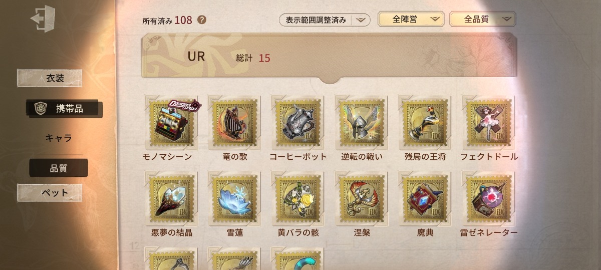 モノクマ・イザベラ・ニーズヘッグ・三途の川を渡る者・ドン・キャンディー少女など所持