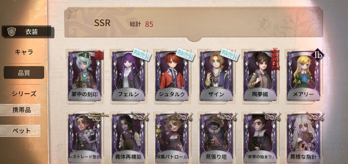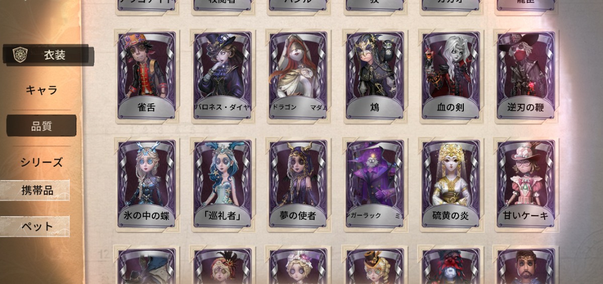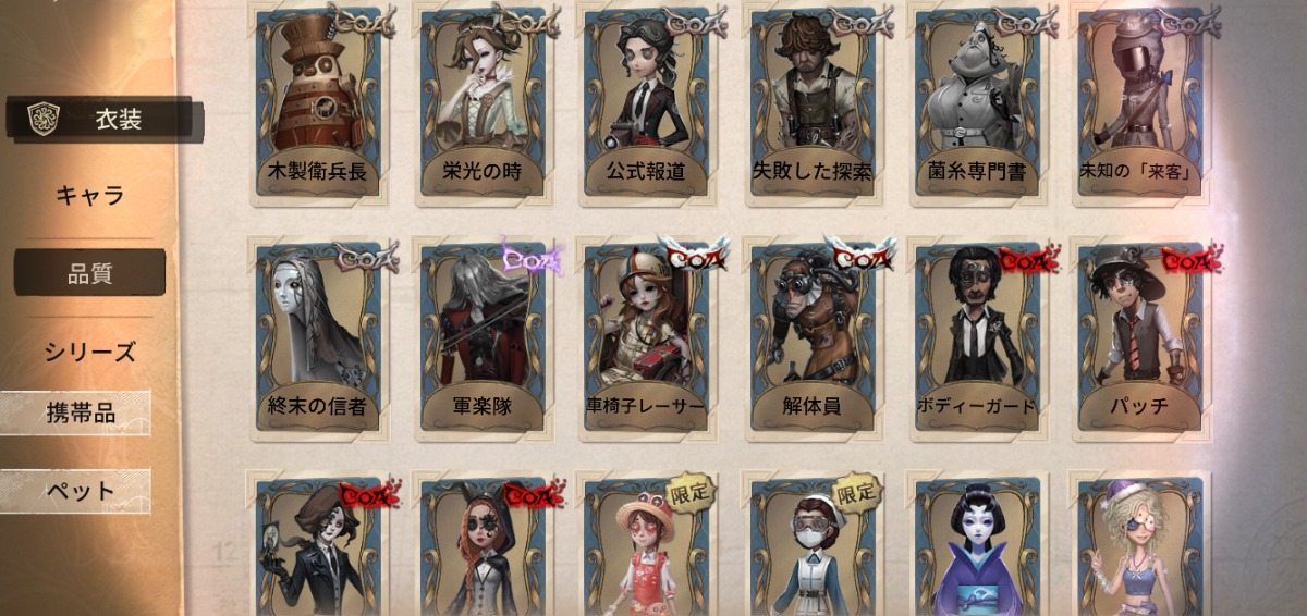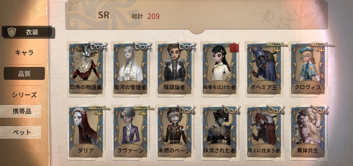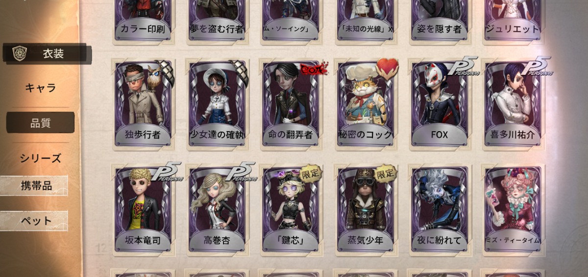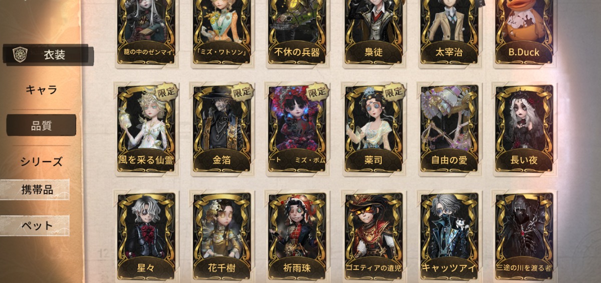 LR衣装1種・太宰治・薬司・風を采る仙霊・鍵芯・蒸気少年など所持