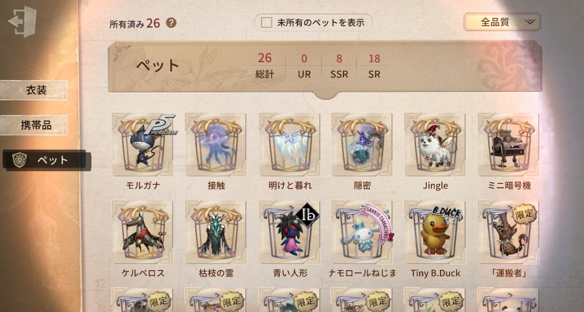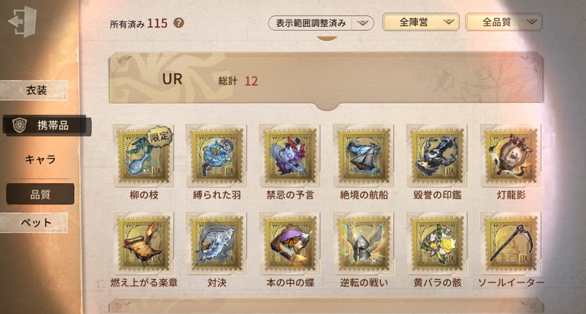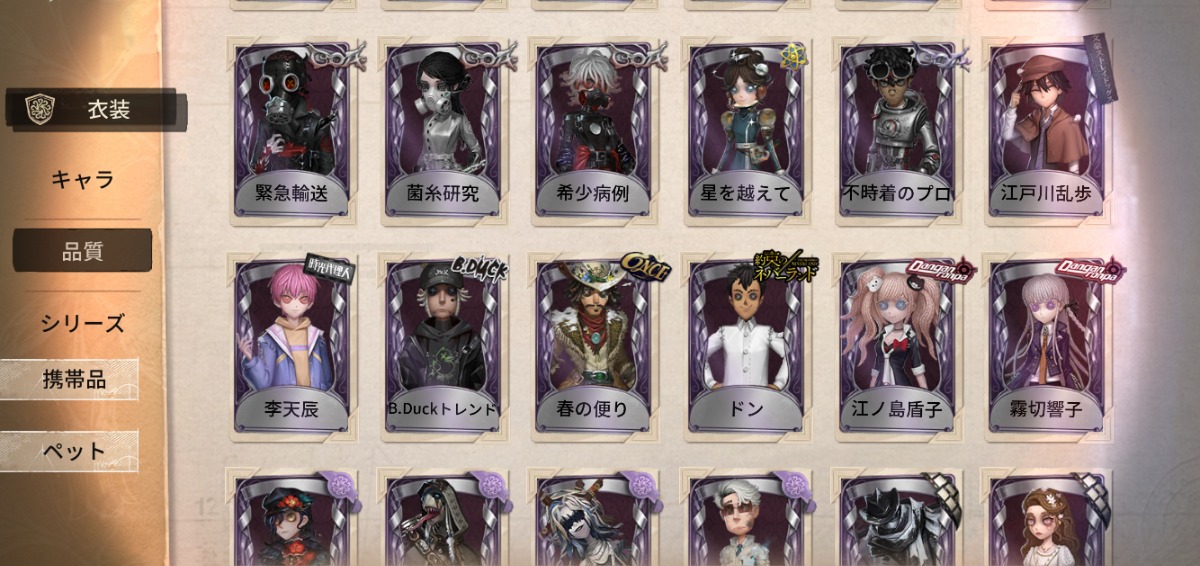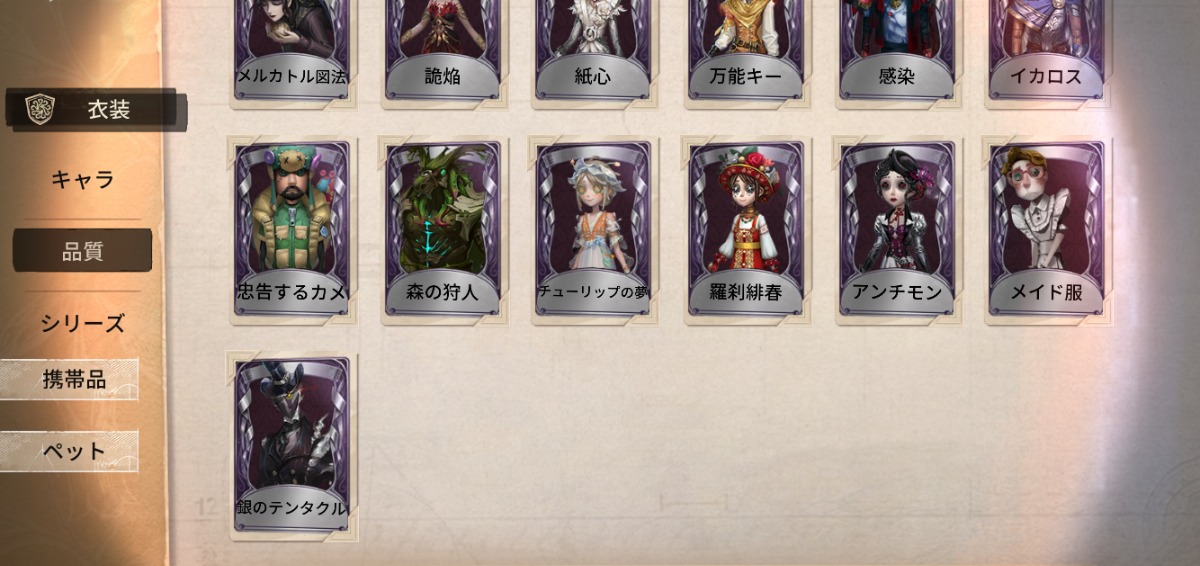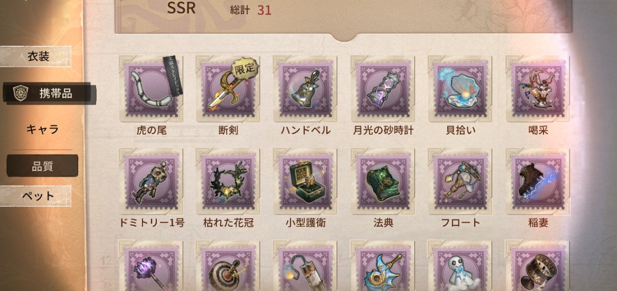 LR衣装1種・太宰治・薬司・風を采る仙霊・鍵芯・蒸気少年など所持