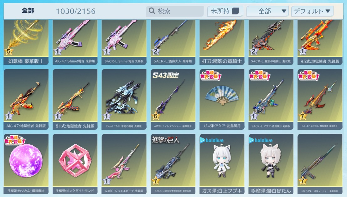 iOS版 殿堂車(涅槃:氷炎のセラフ)・殿堂銃(M4A4:アズラーイール)など所持