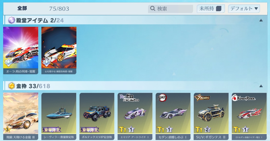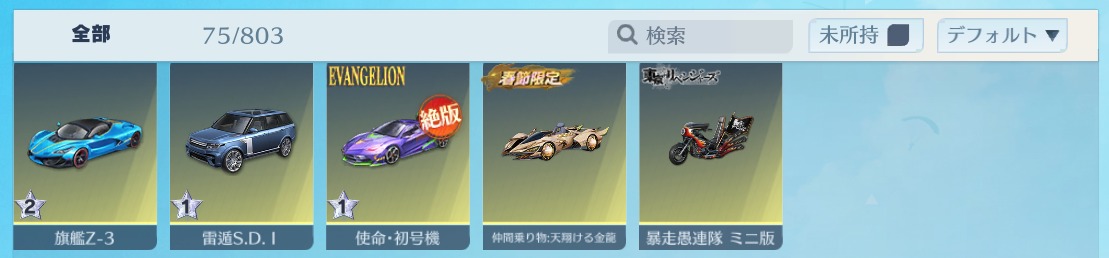 | 車両スキン | 75個 |
