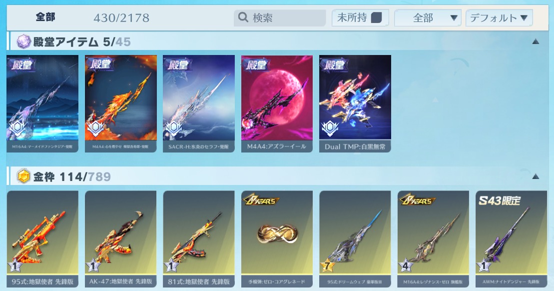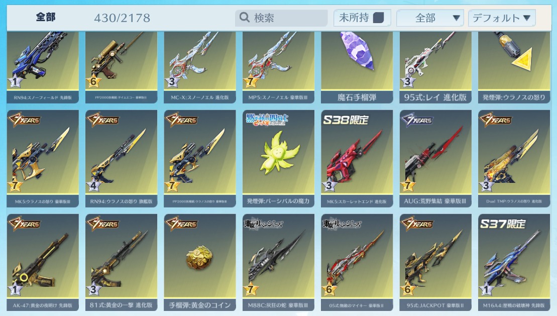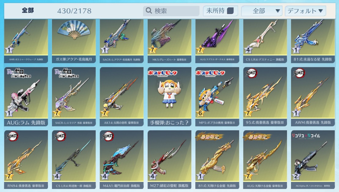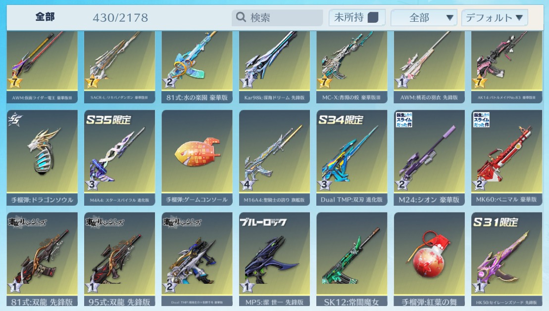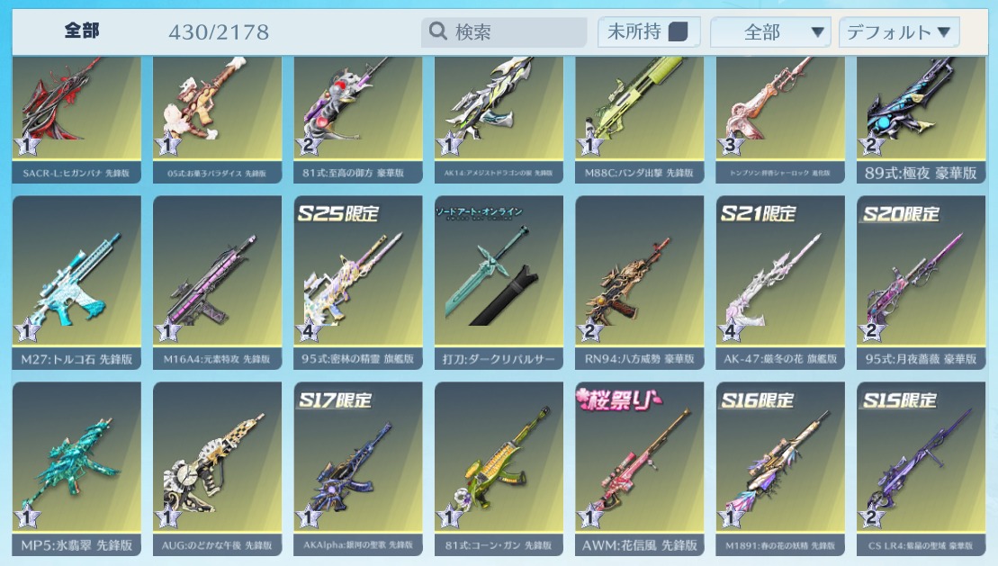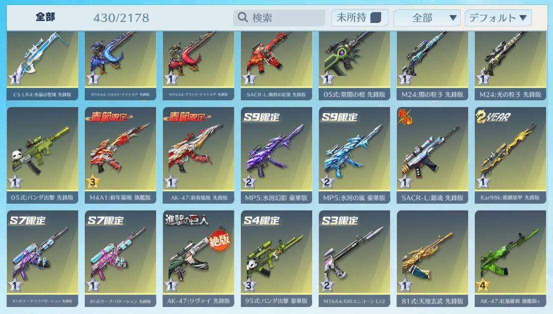 | 銃器スキン | 425個以上 |