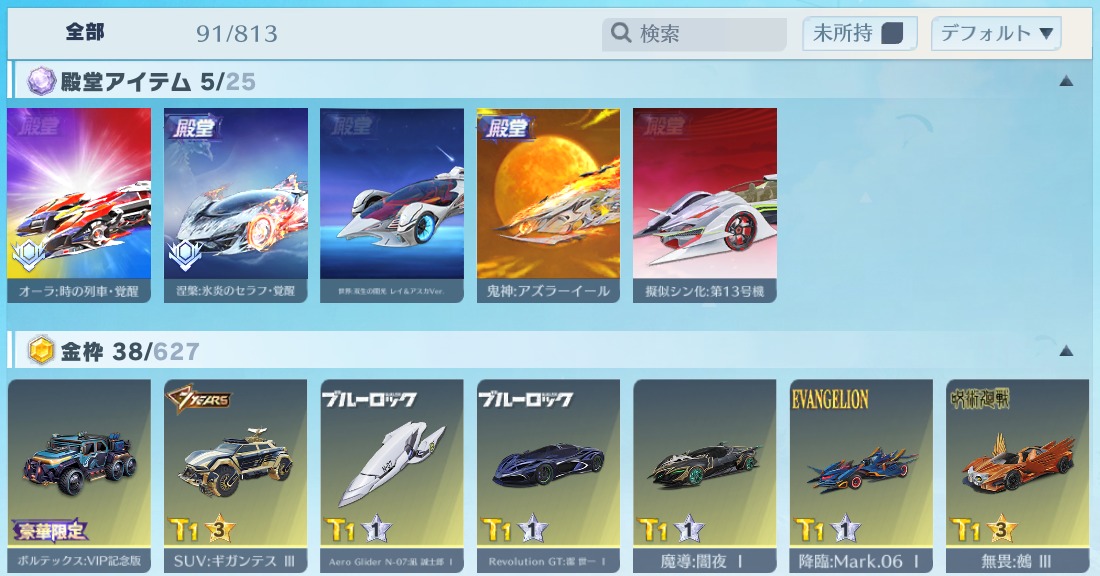 iOS版 殿堂車(鬼神:アズラーイール)・殿堂車(オーラ:時の列車)など所持