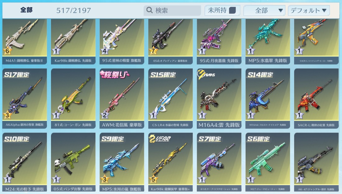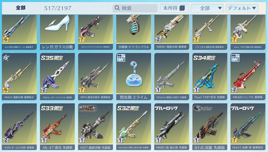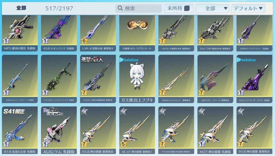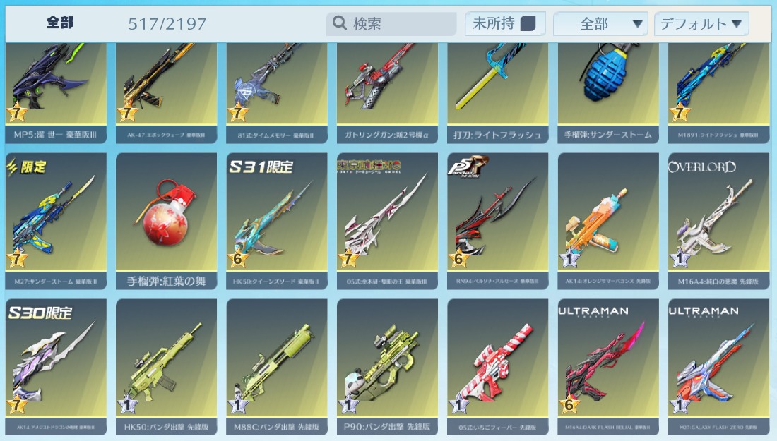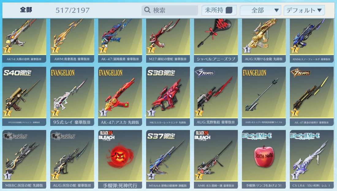 | 銃器スキン | 510個以上 |