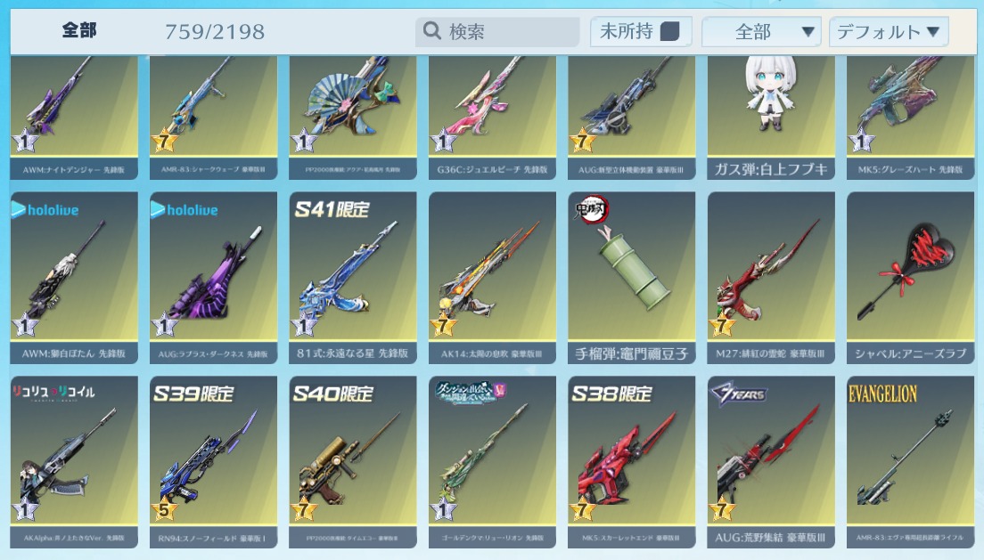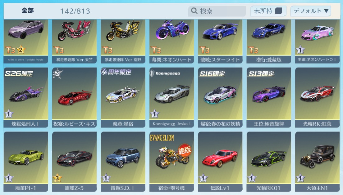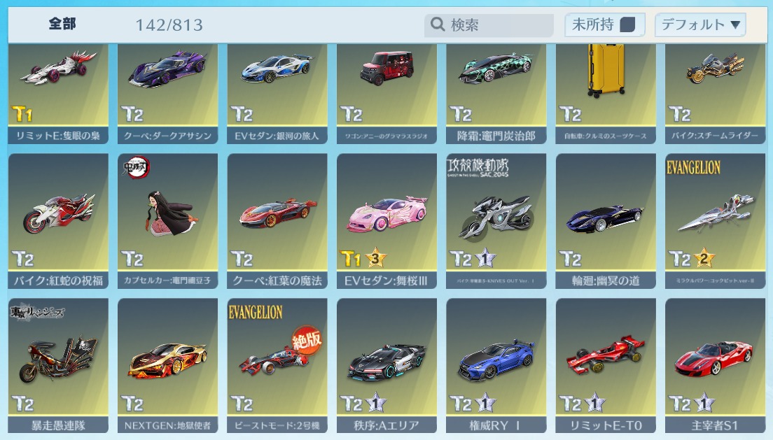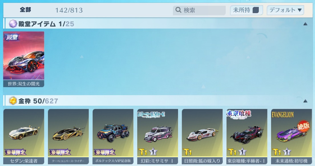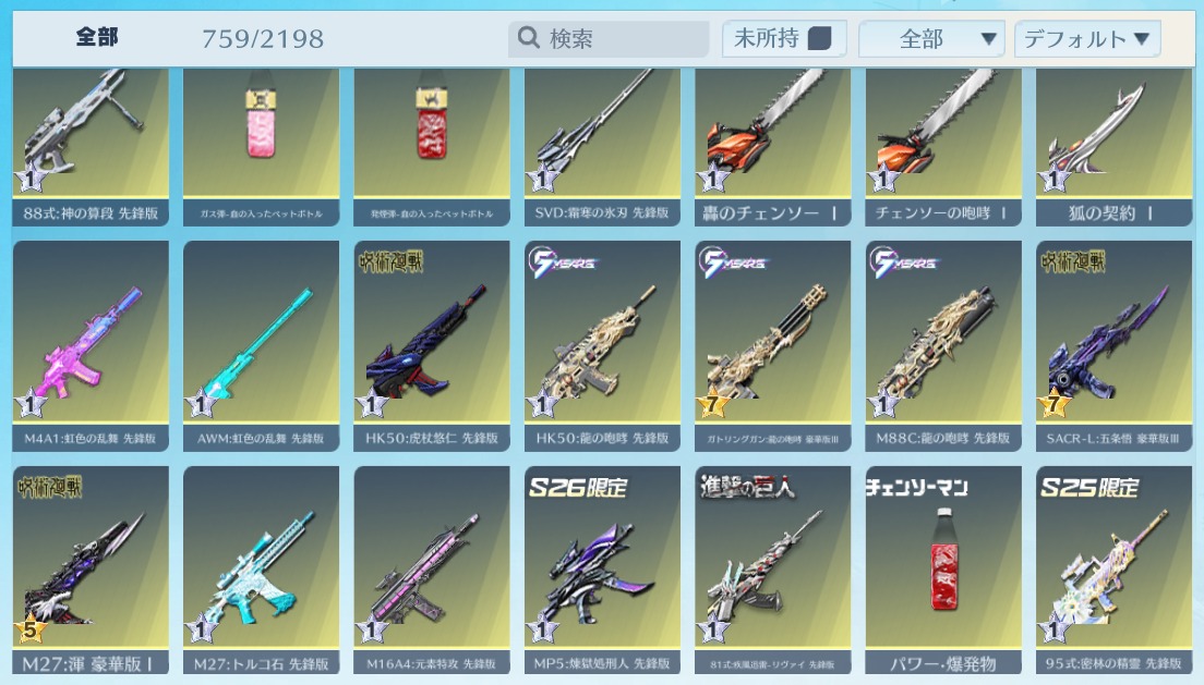 iOS版 殿堂車(世界:双生の闇光)・殿堂銃(AK-47:現代最強の呪術師・五条悟)など所持
