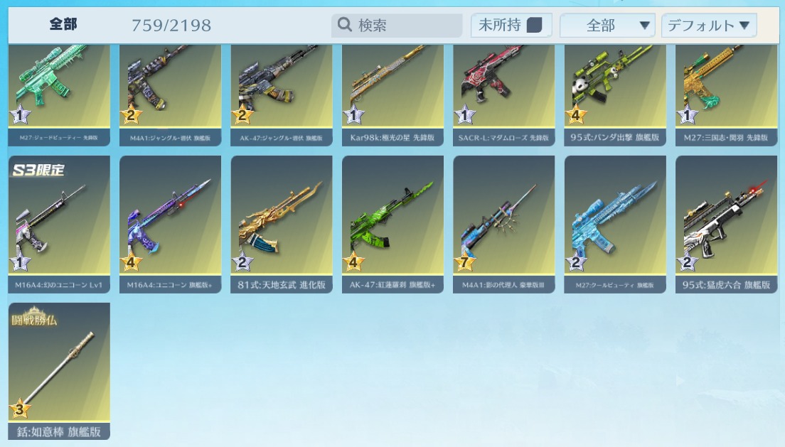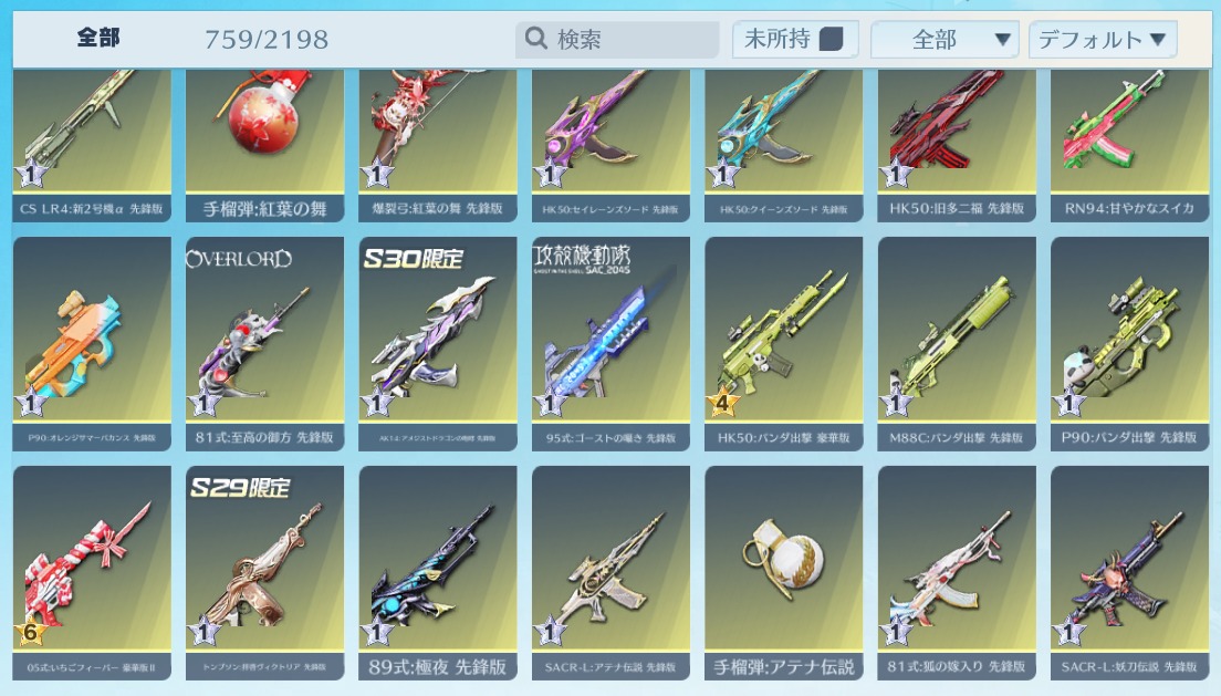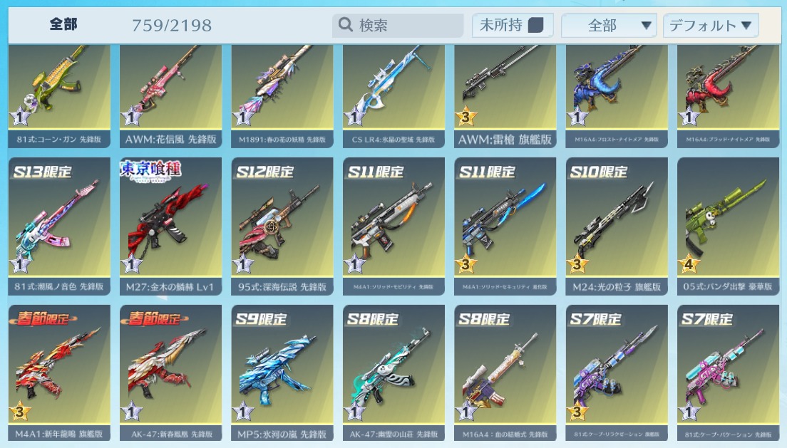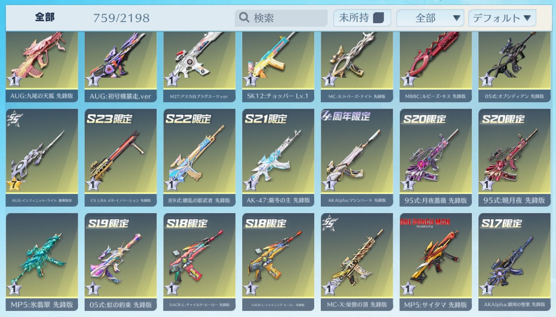 iOS版 殿堂車(世界:双生の闇光)・殿堂銃(AK-47:現代最強の呪術師・五条悟)など所持