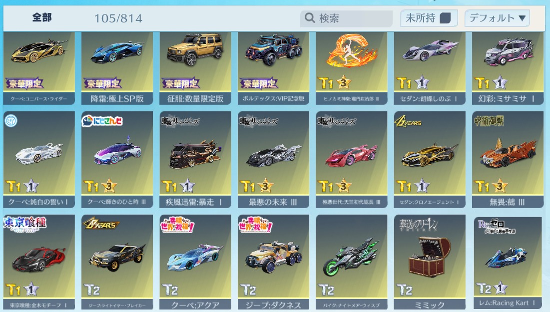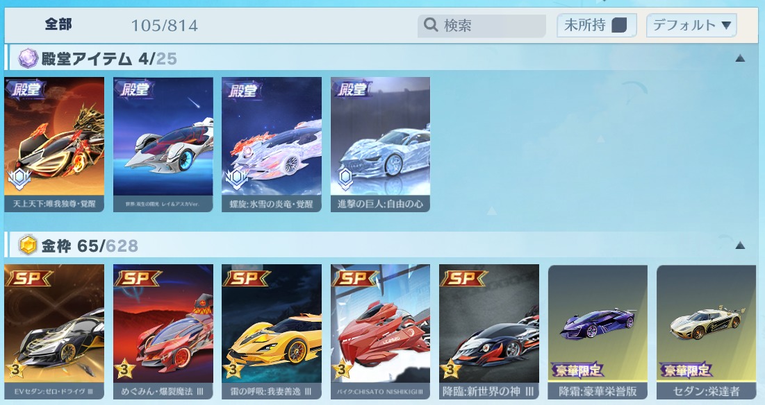 iOS版 殿堂車(天上天下:唯我独尊)・殿堂車(進撃の巨人:自由の心)など所持