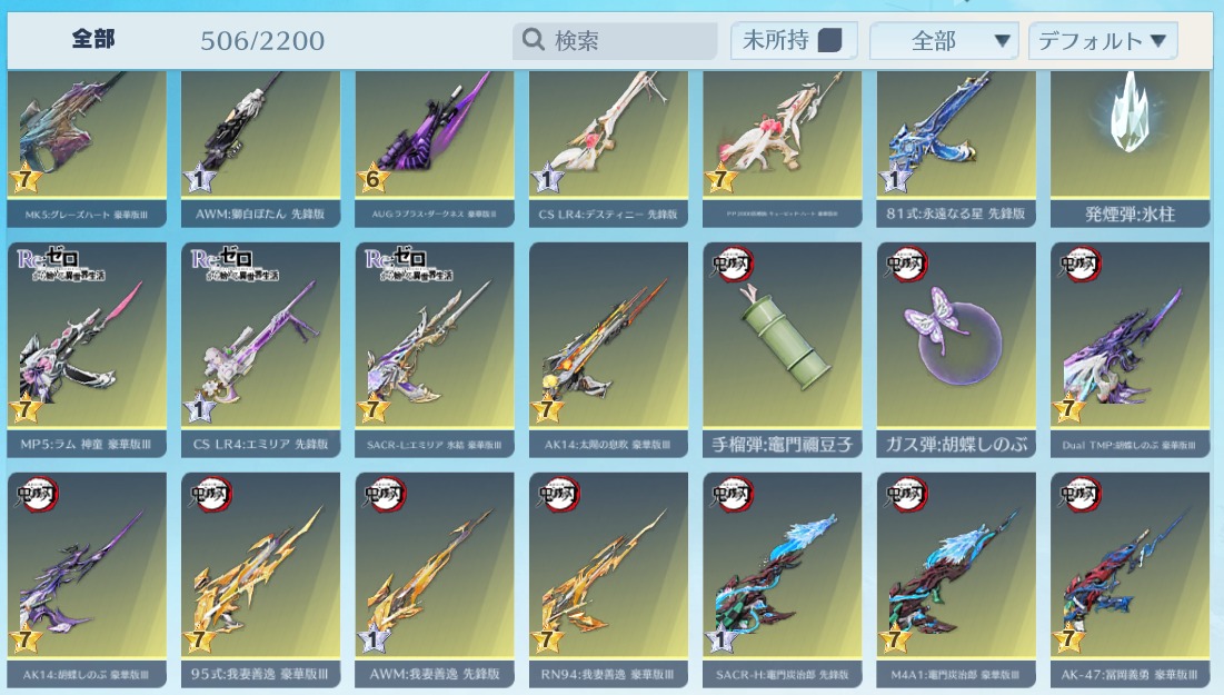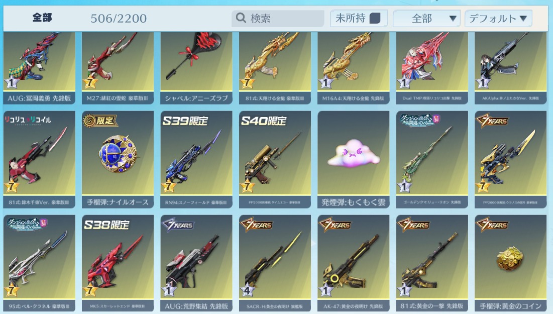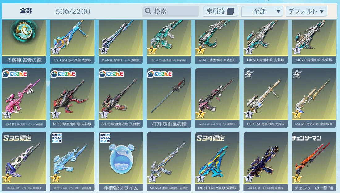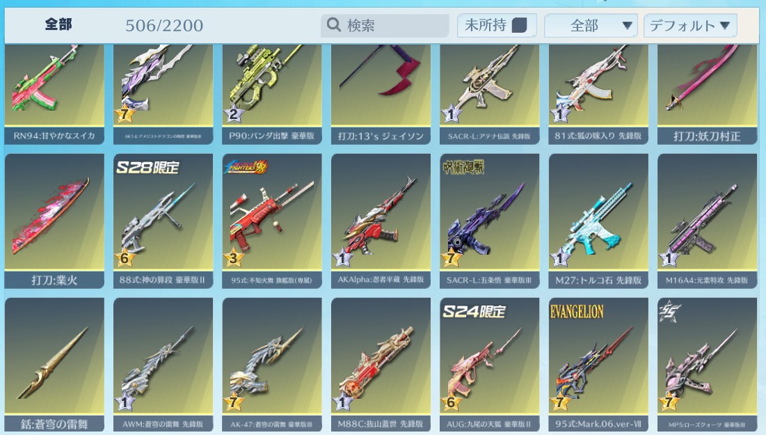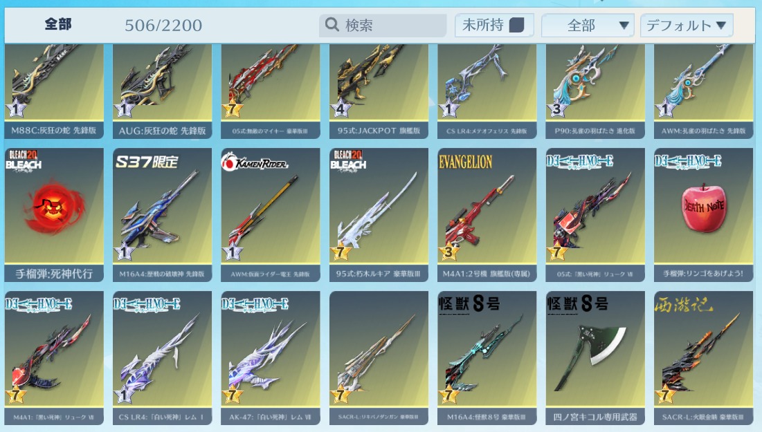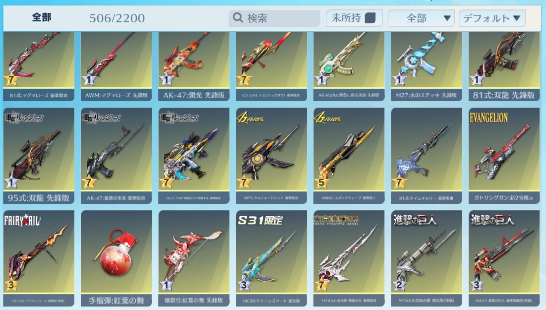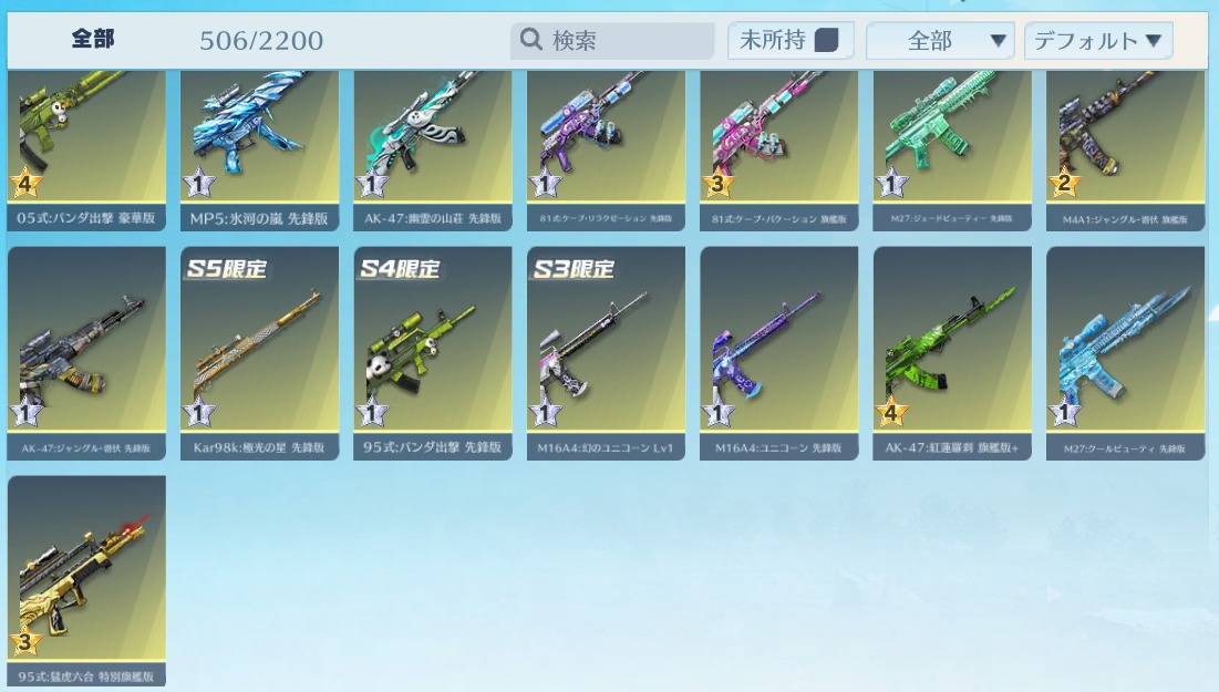 | 銃器スキン | 500個以上 |