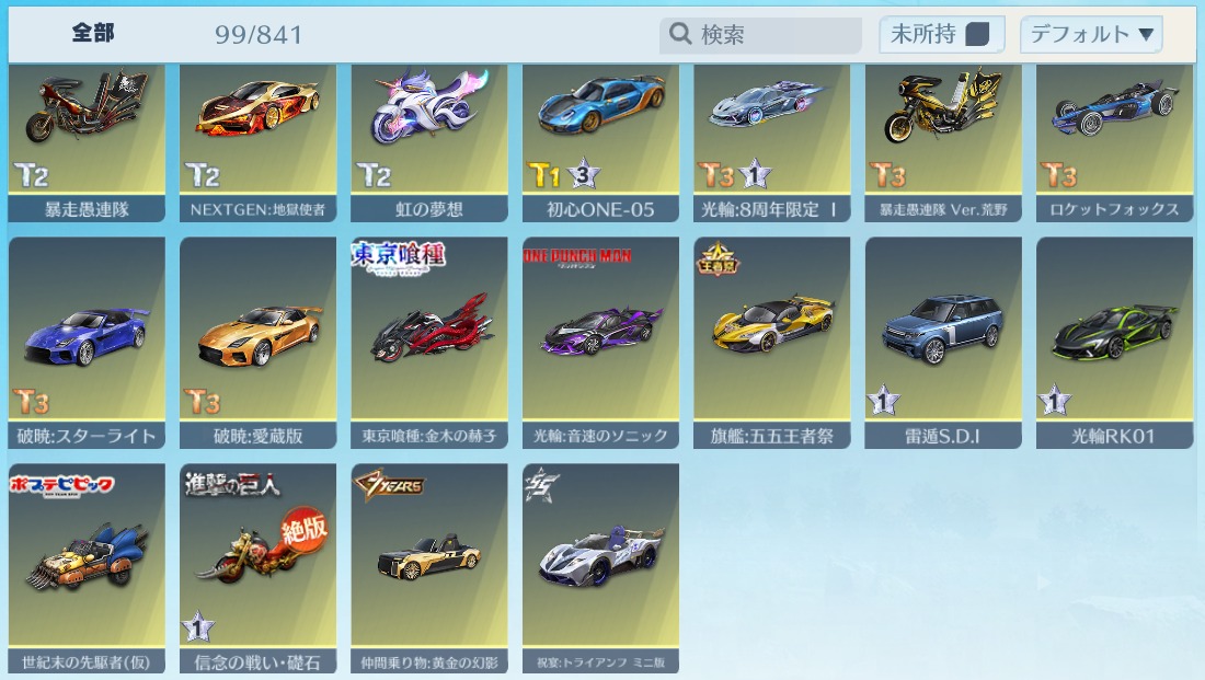 | 車両スキン | 99個 |