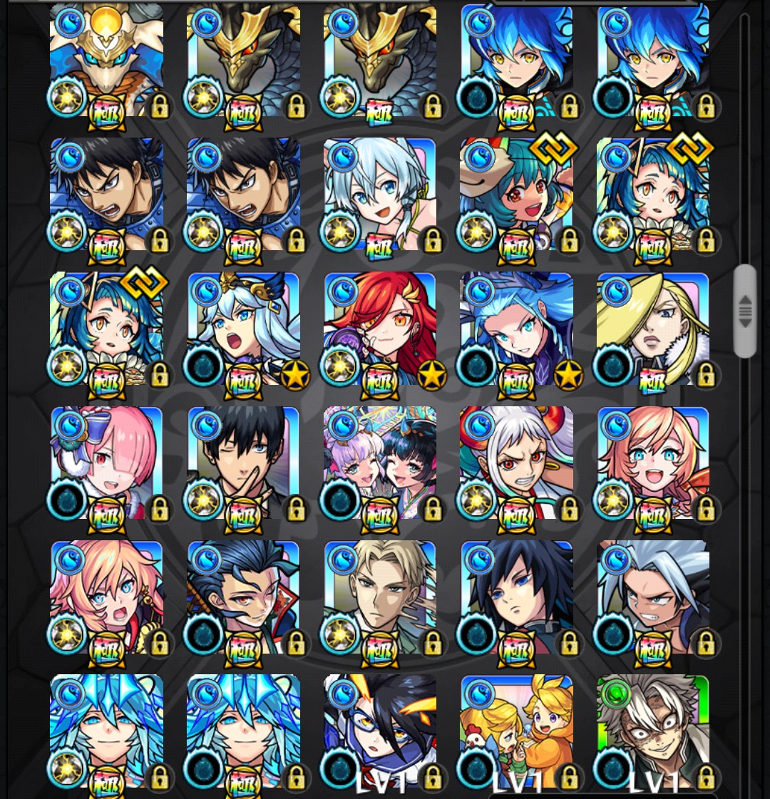 黎絶運極2種・轟絶運極36種・不死川・忍野忍・ヤバ女・ルネサンスなど所持