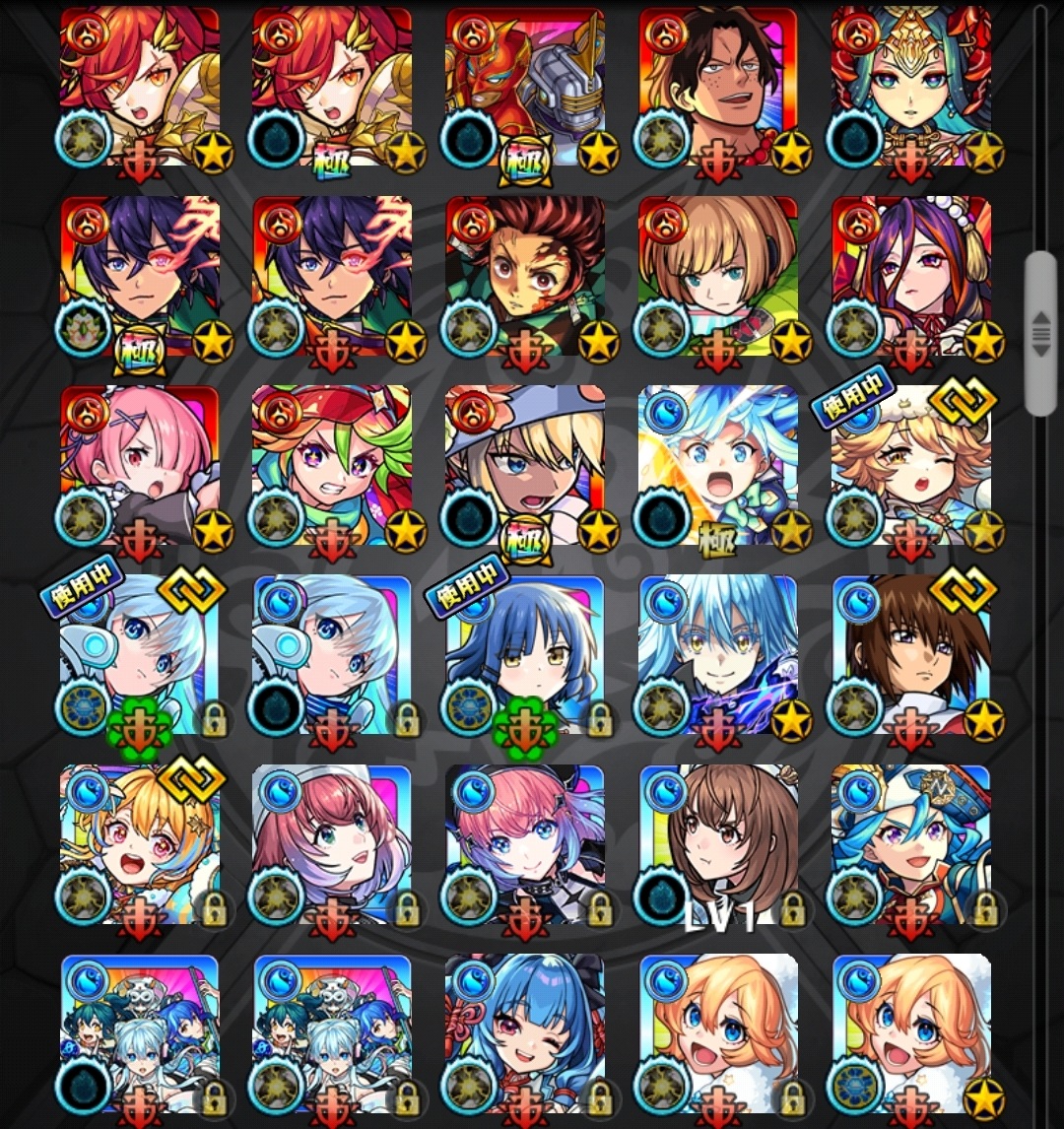 ガチャ限運極4体・黎絶運極4種・轟絶運極32種・めぐみん・アクアなど所持(オーブ2500個以上)