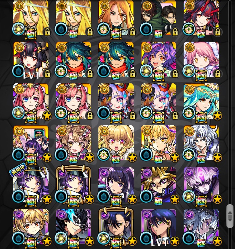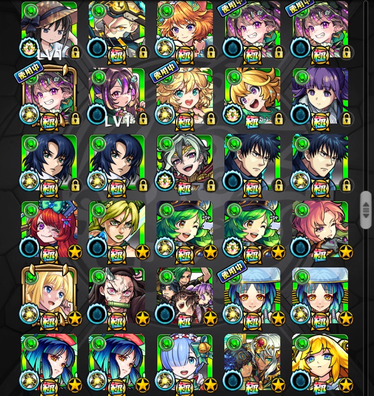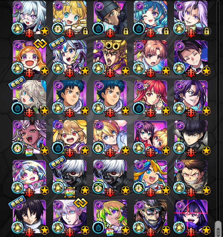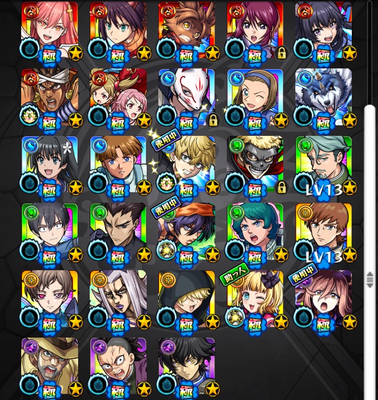 恒常・降臨キャラなどの所持状況は
