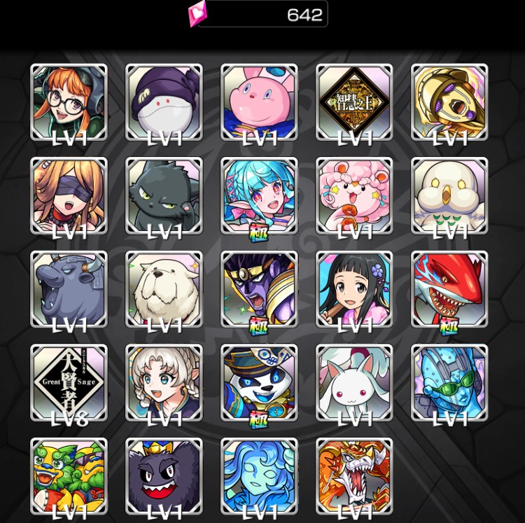 | ガチャ限定モンスター所持数 | 1550体以上 |
