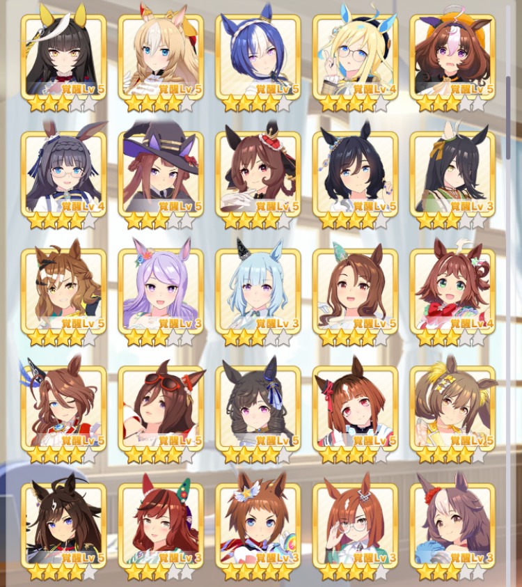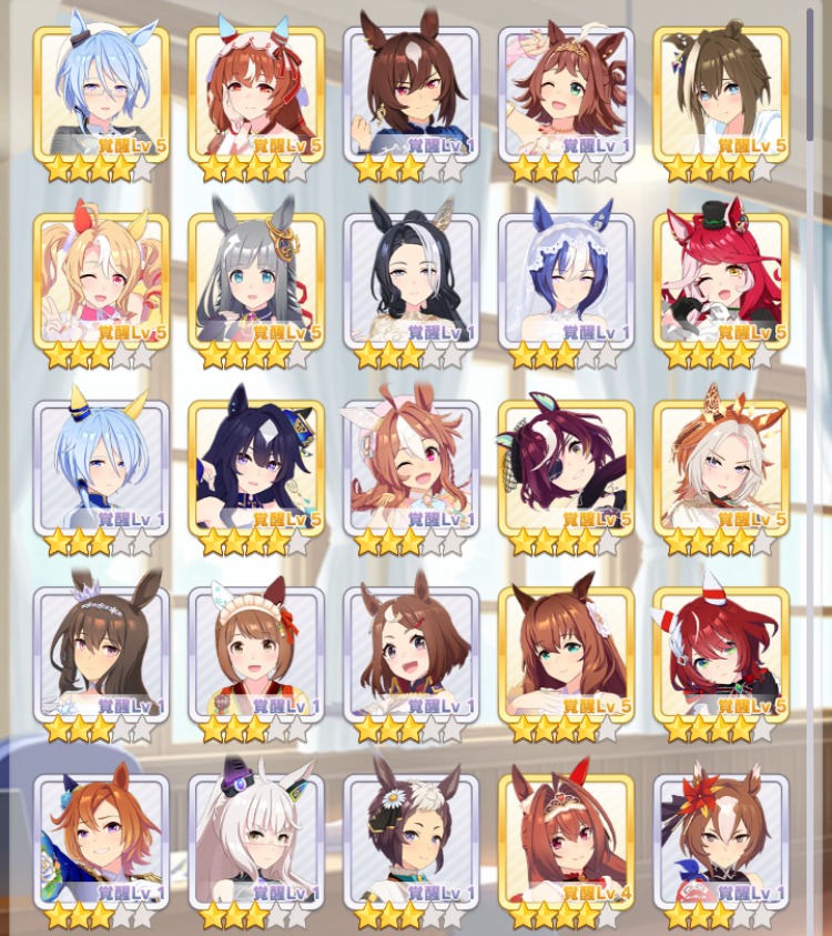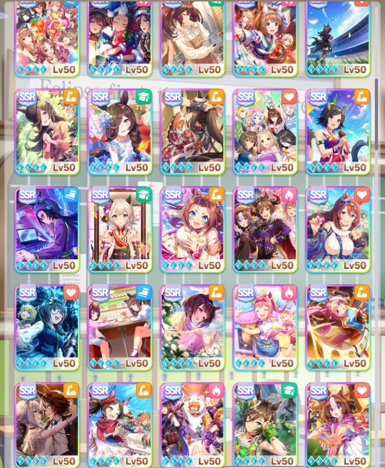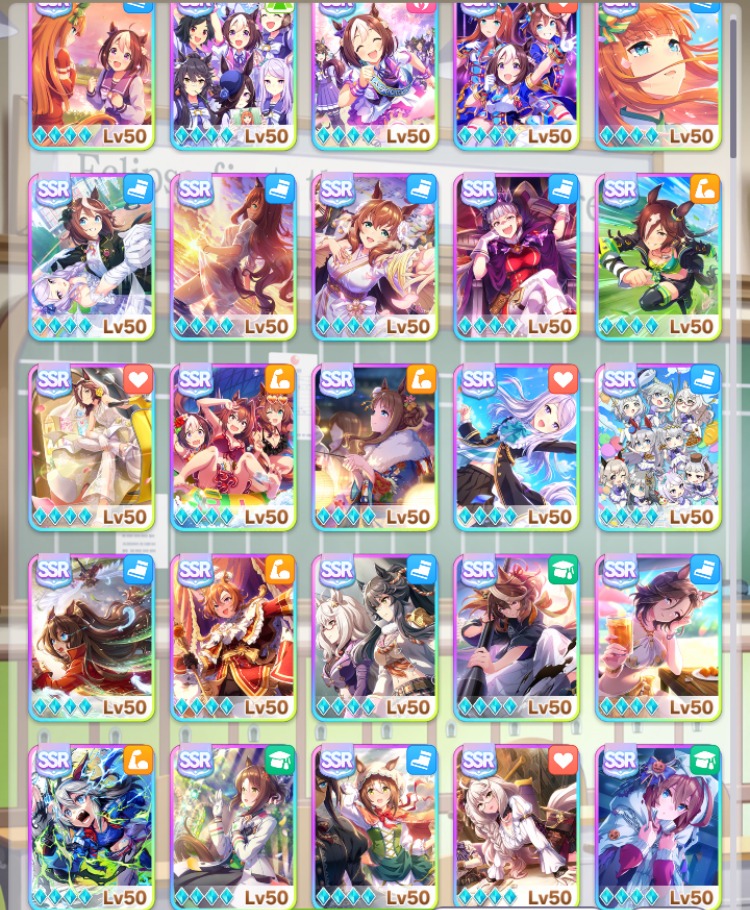 SSR完凸アーモンドアイ・SSR完凸タマモクロス・SSR完凸ダンツフレームなど所持(虹の解放結晶1個)