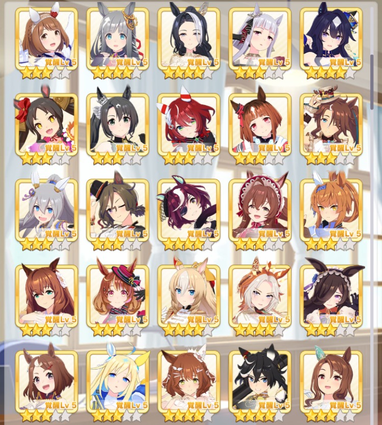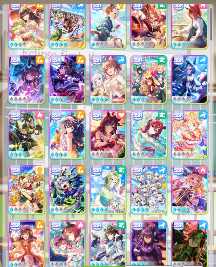 SSR完凸アーモンドアイ・SSR完凸デアリングタクトなど所持(虹の解放結晶1個)