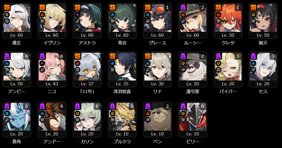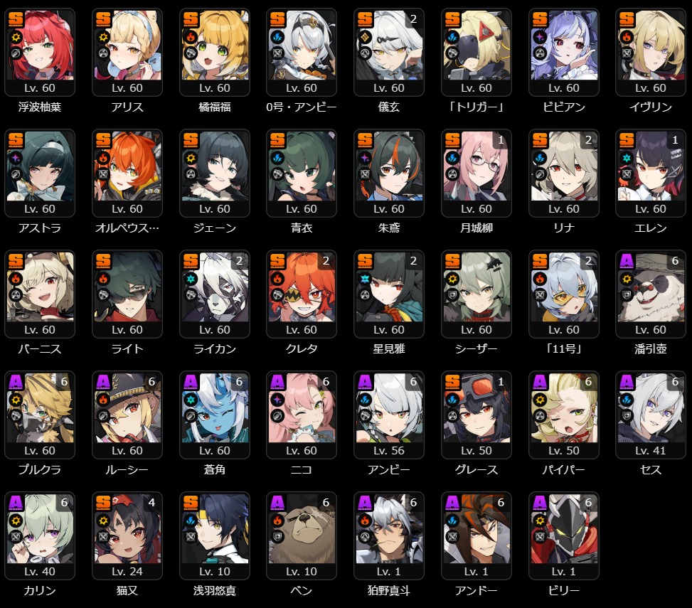 【完売】【S級エージェント17体 完凸】【S級音動機11種 完凸】など所持