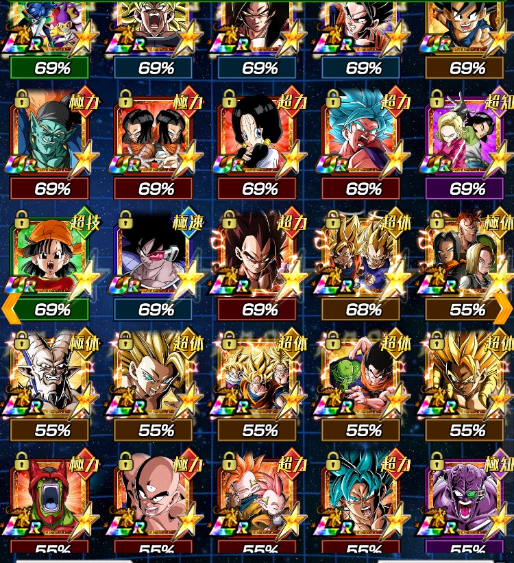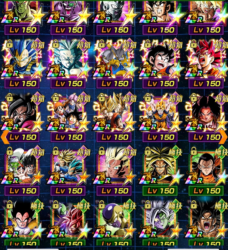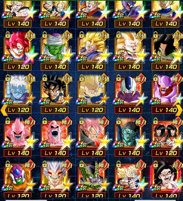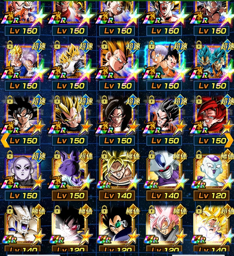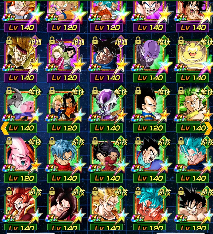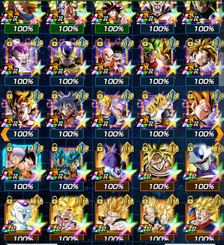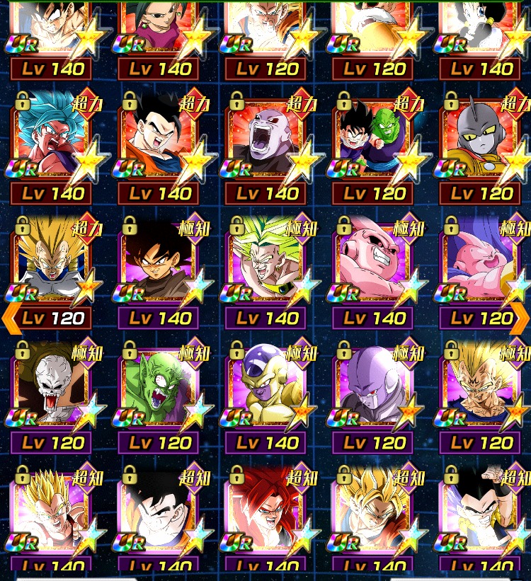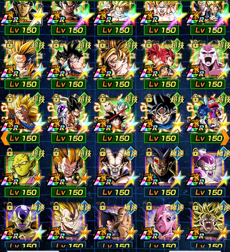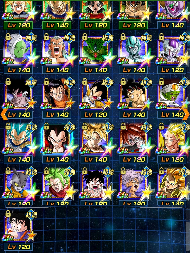 超絶LR2種(ゴルフリゴジータ2凸)・グローバルLR4種・10周年LR6種(ベジット4凸)など所持