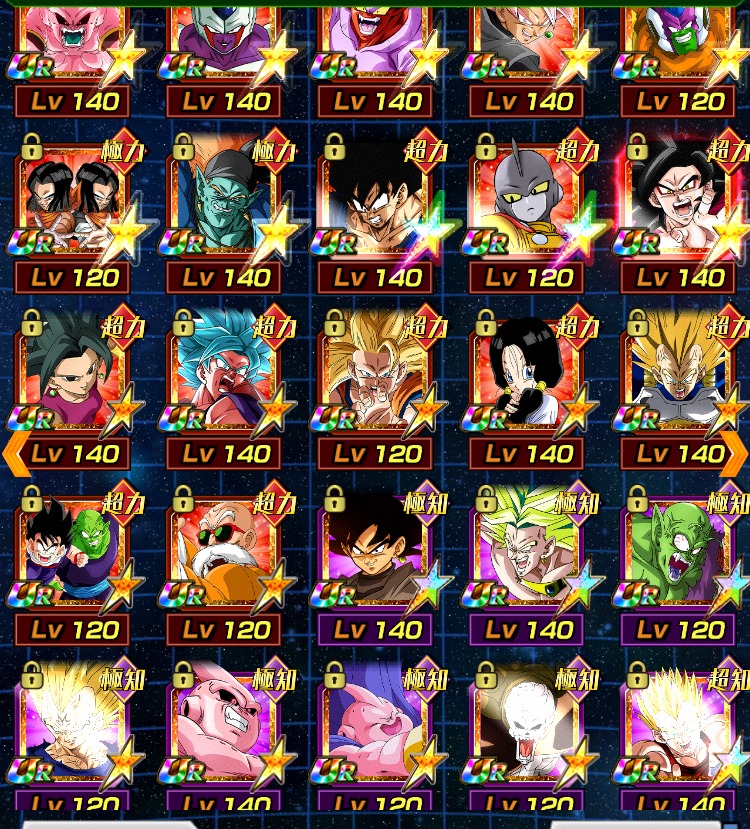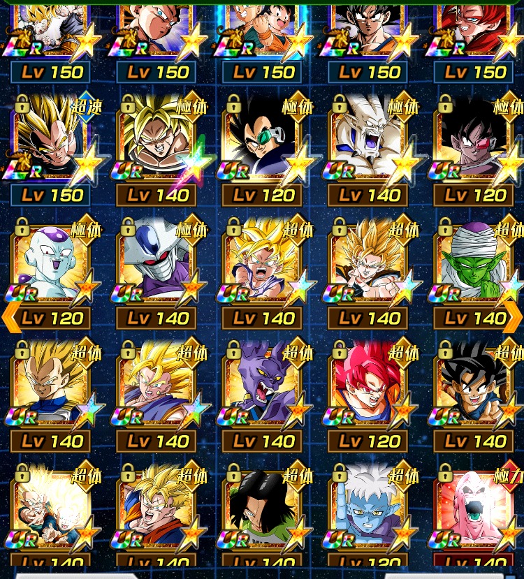 グローバルLR4種・10周年LR6種(ベジット3凸・GT悟空1凸)など所持