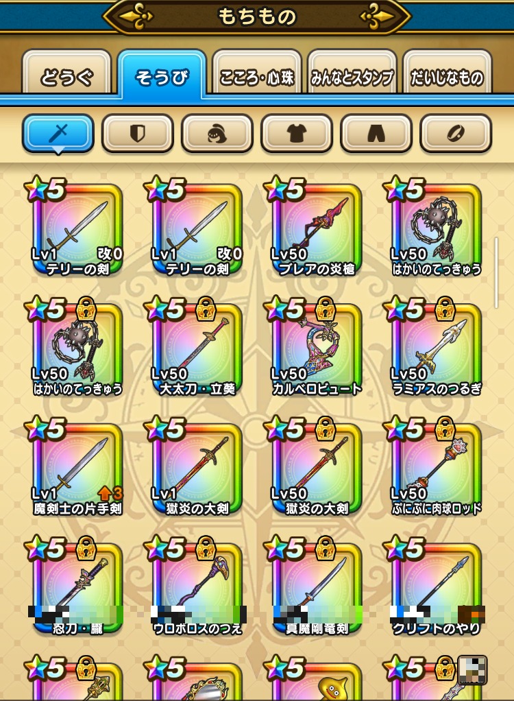 たいようのおうぎ・オリハルコンの短剣・八竜神の剣など所持