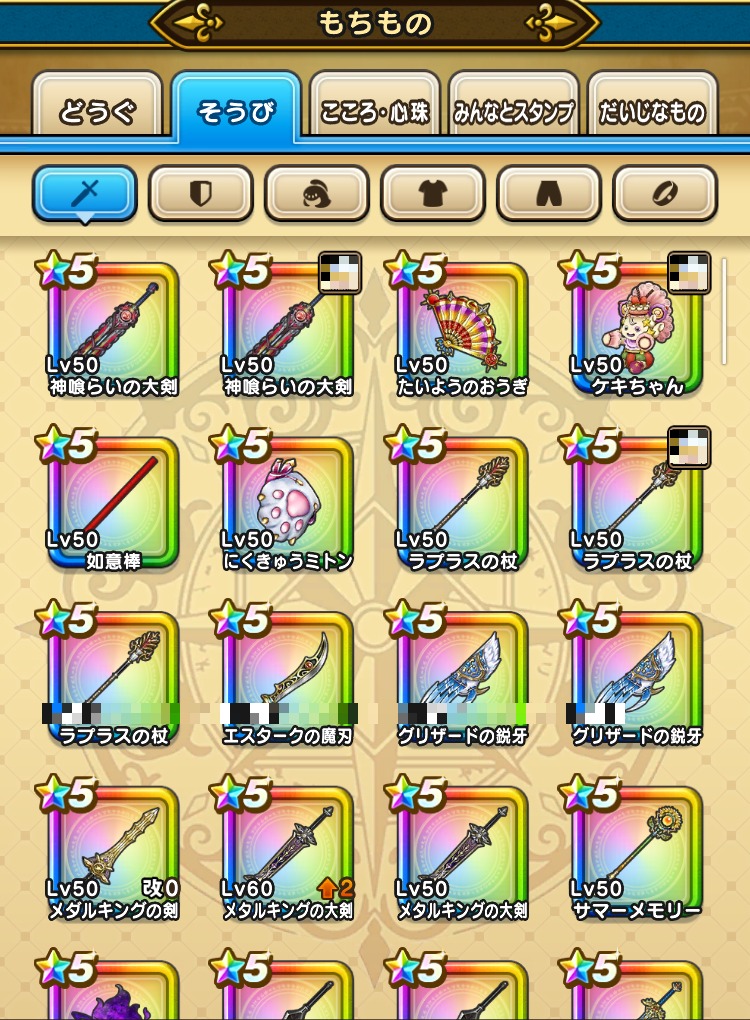 たいようのおうぎ・ケキちゃん・神喰らいの大剣など所持