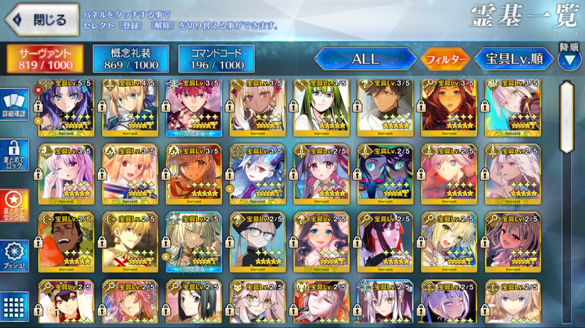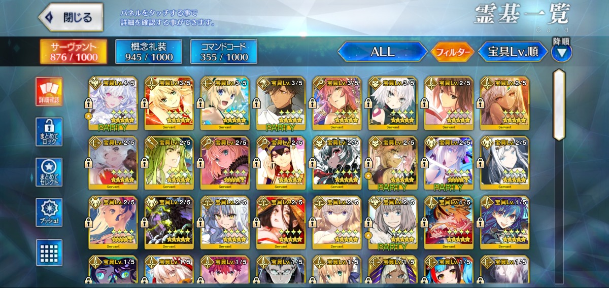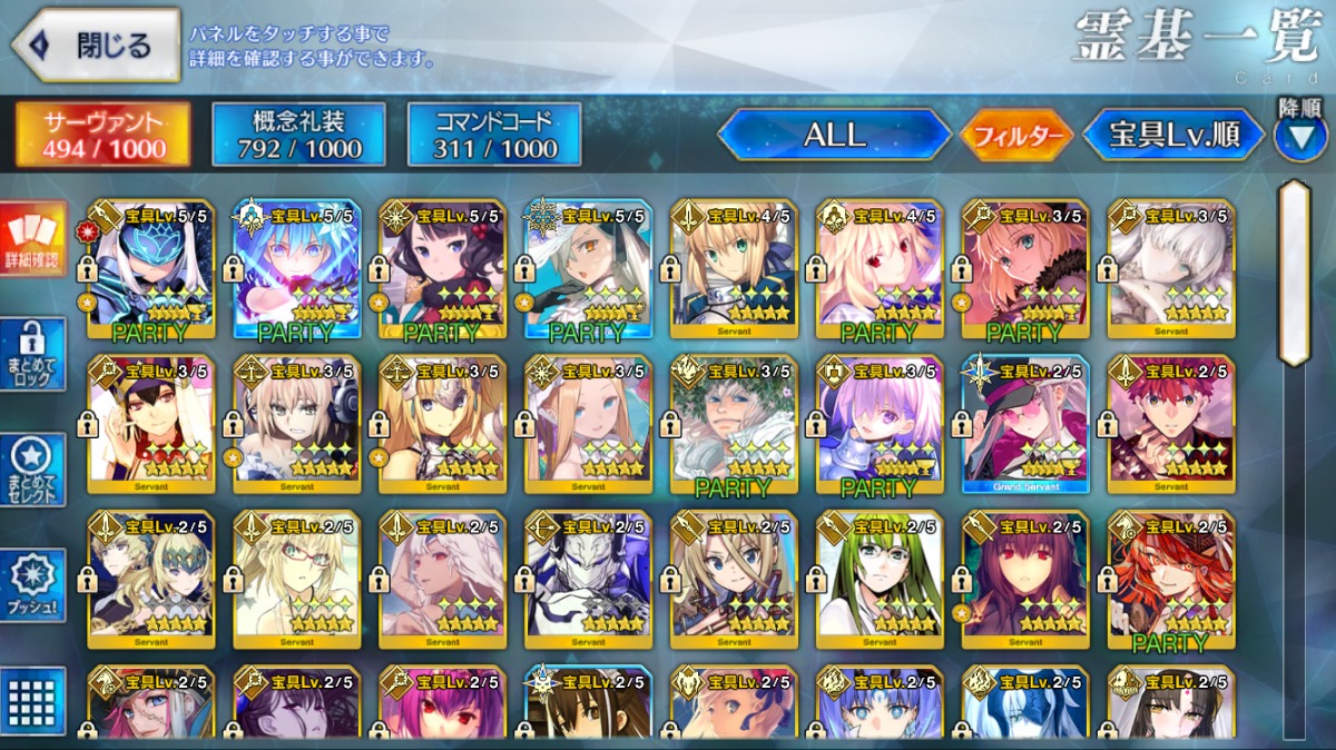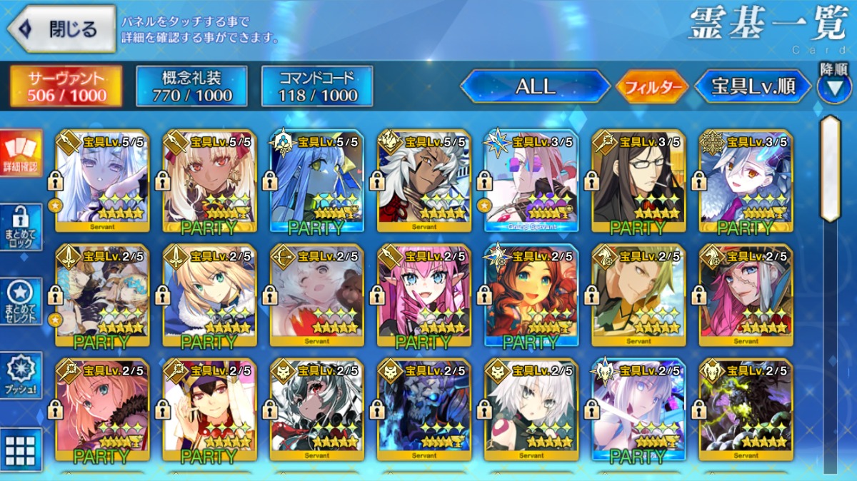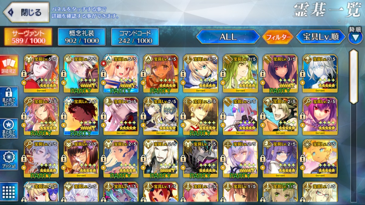 累計入手数=★5サーヴァントの宝具レベル合計値となります。