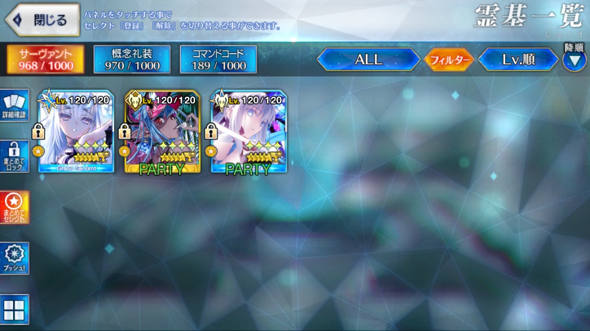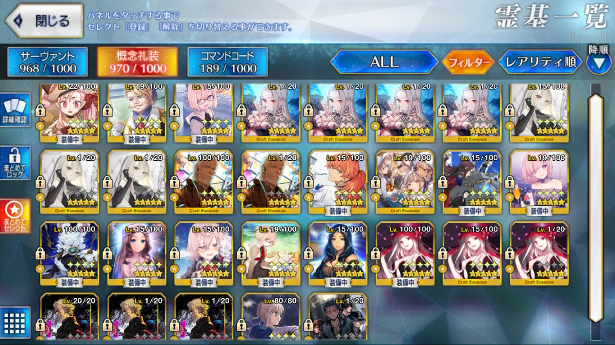 U-オルガマリー宝具5・モルガン宝具5・水着伊吹宝具5など所持