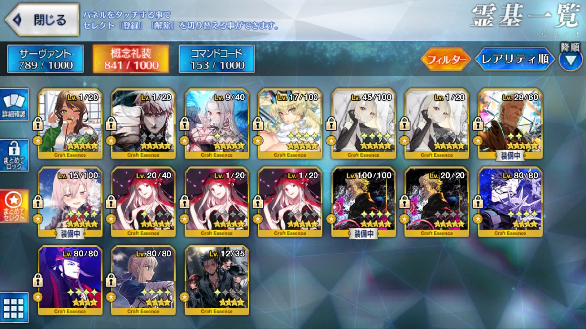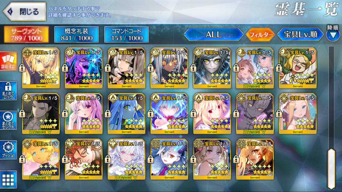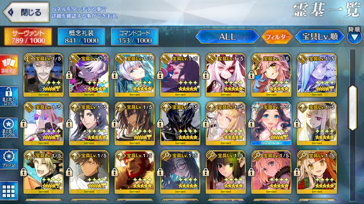 魔王信長宝具3・オベロン宝具2・近藤勇・U-オルガマリーなど所持