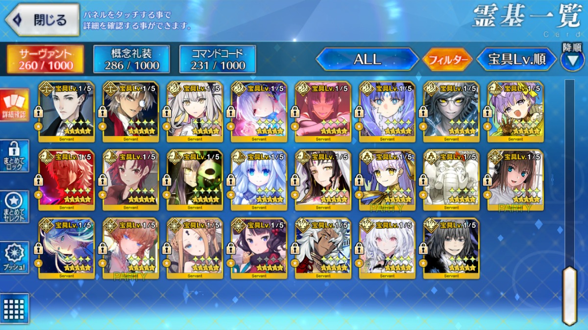 (★5宝具5鯖30種以上)【U-オルガマリー・玉兎・トネリコ・千利休】宝具5:Lv120など所持(聖晶石1800個以上)
