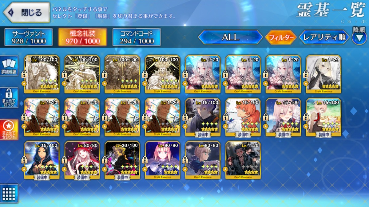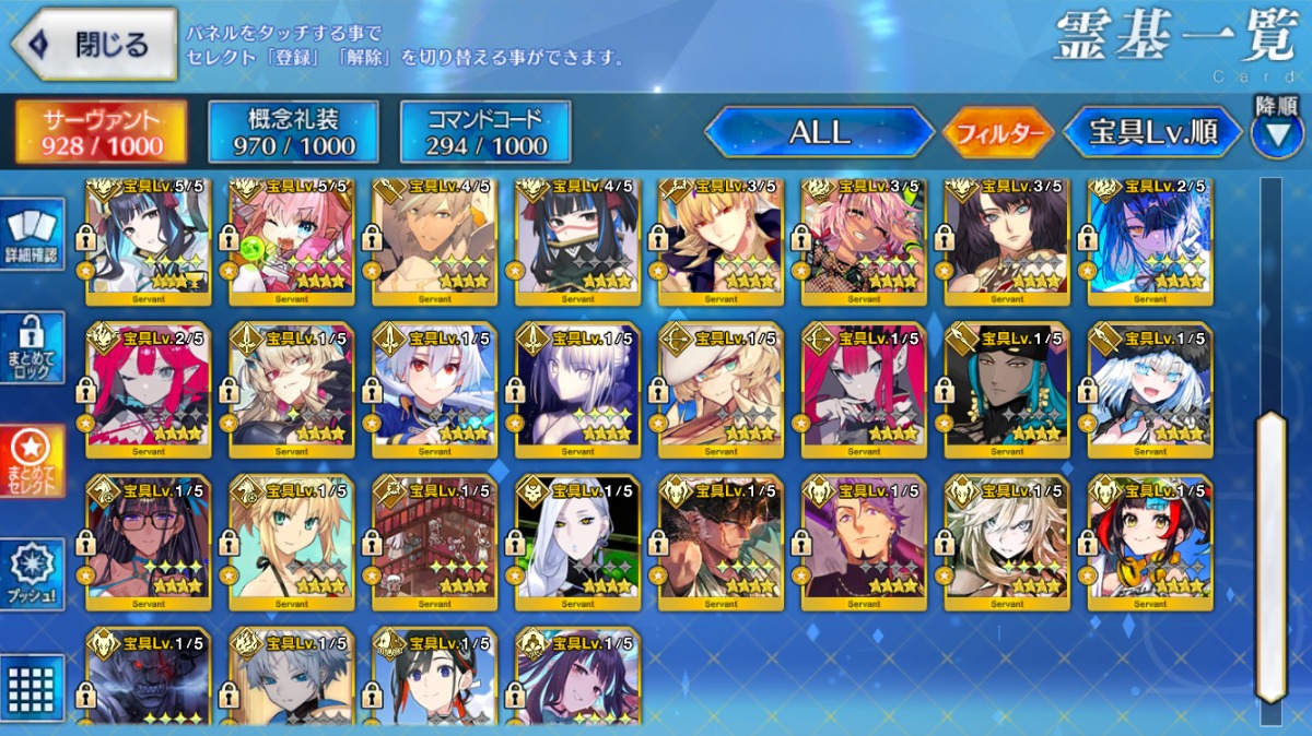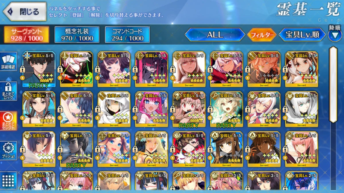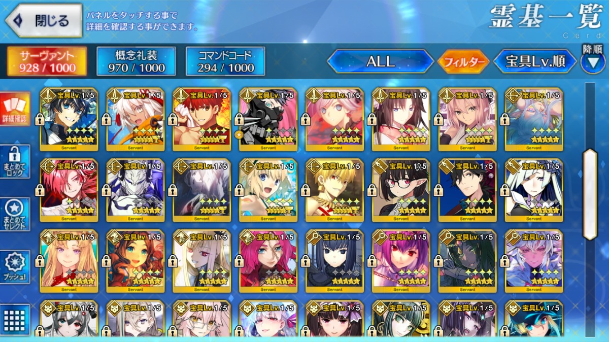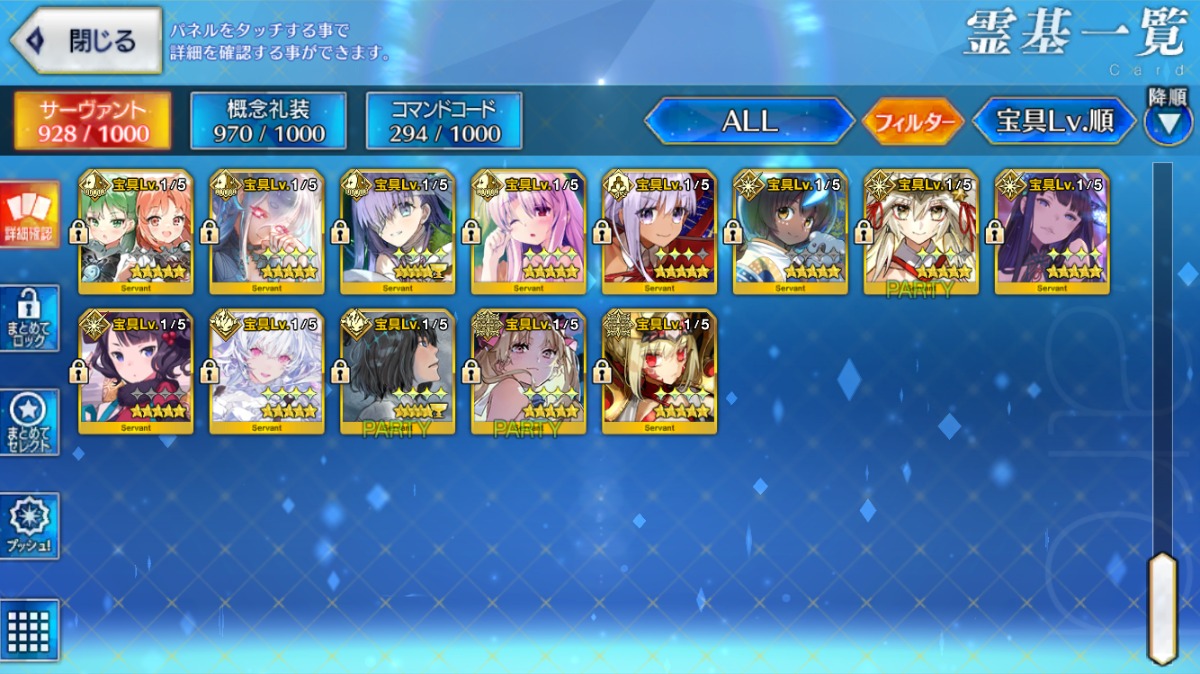 U-オルガマリー宝具5・アルクェイド宝具3・【ノア・ロウヒ・リリス】宝具2など所持