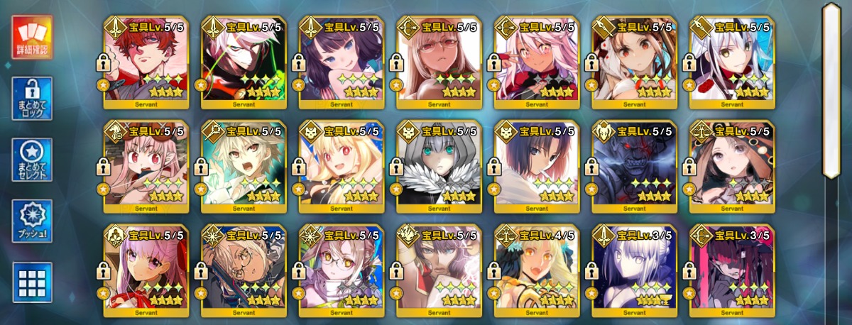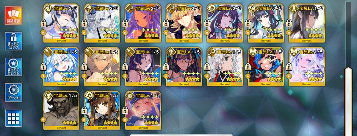 ジャンヌ〔オルタ〕宝具5:Lv120・U-オルガマリー宝具4・水着伊吹宝具3など所持