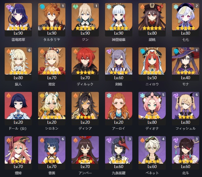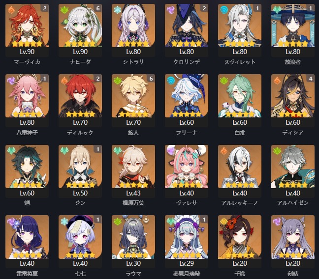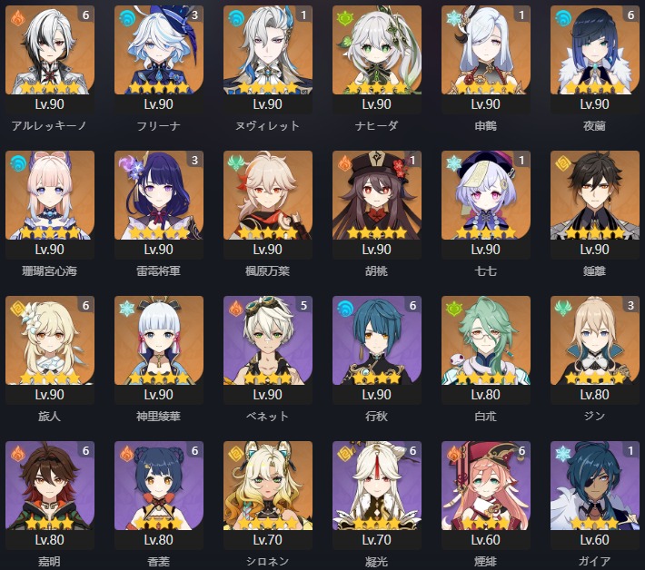 全部 ドゥリン ネフェル ラウマ フリンズ イネファ スカーク エスコフィエ フリーナ マーヴィカ シトラリ ヴァレサ チャスカ シロネン キィニチ 雷電将軍 ナヒーダ