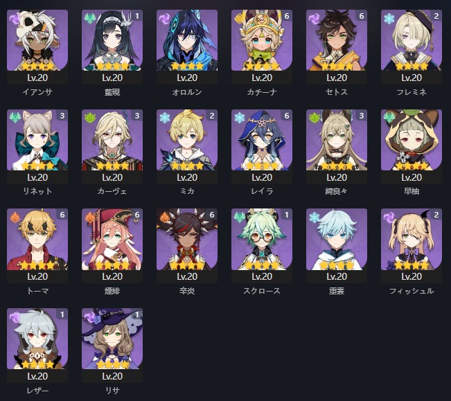 ナヒーダ 完凸・マーヴィカ 2凸・クロリンデ 2凸・シトラリ・ラウマなど所持