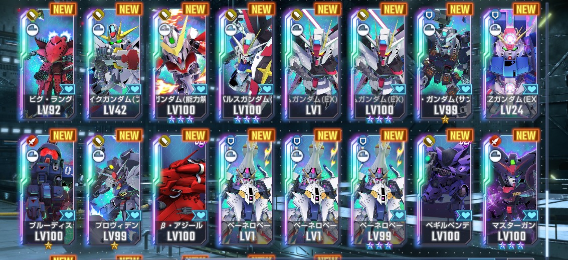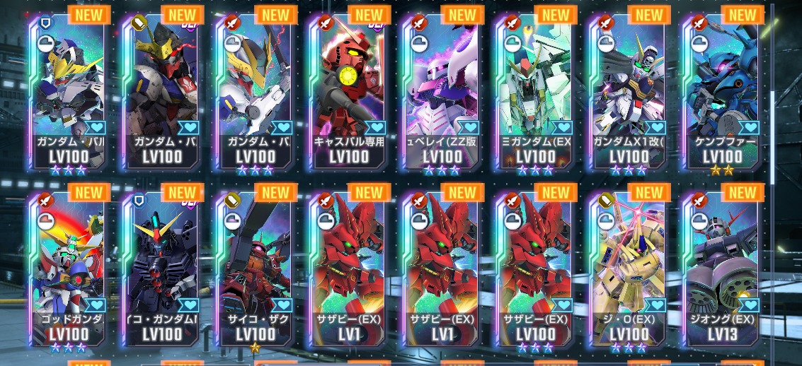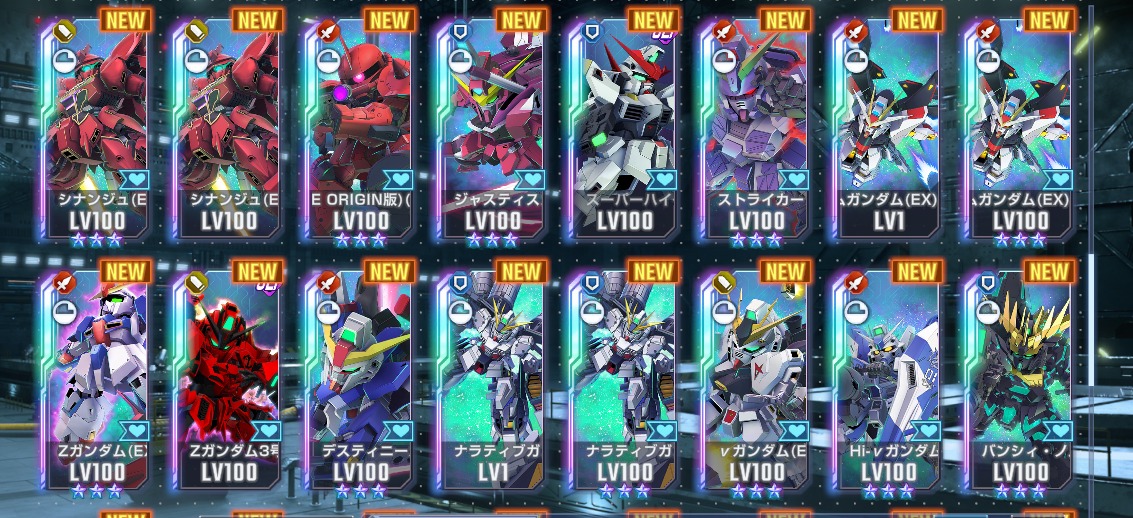 完凸デスティニー・完凸キャリバーン(最終決戦時)・完凸ゴッドガンダムなど所持