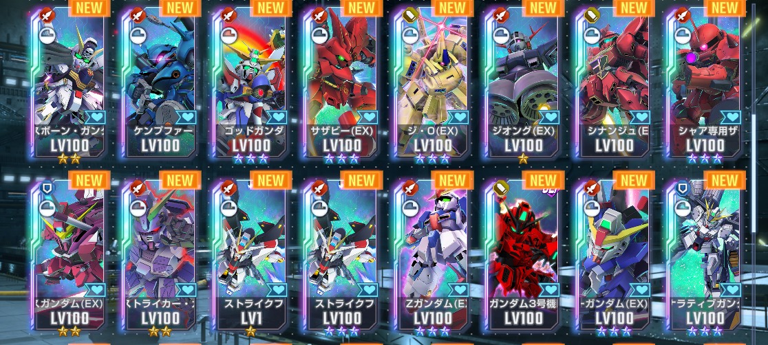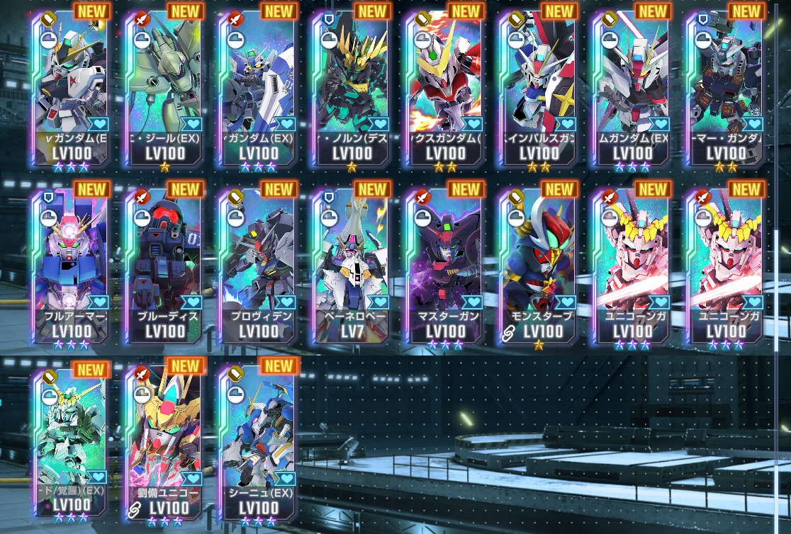 完凸ゴッドガンダム・完凸デスティニー・2凸キャリバーン(最終決戦時)など所持