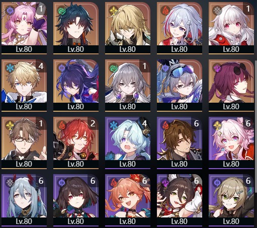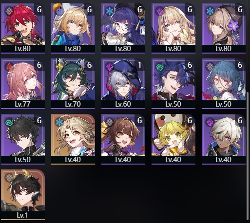 飛霄 2凸・ロビン 1凸・ジェイド・アベンチュリン・キャストリス・黄泉など所持