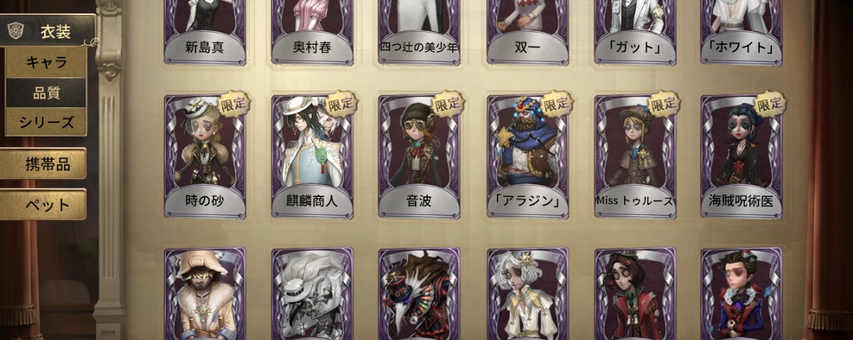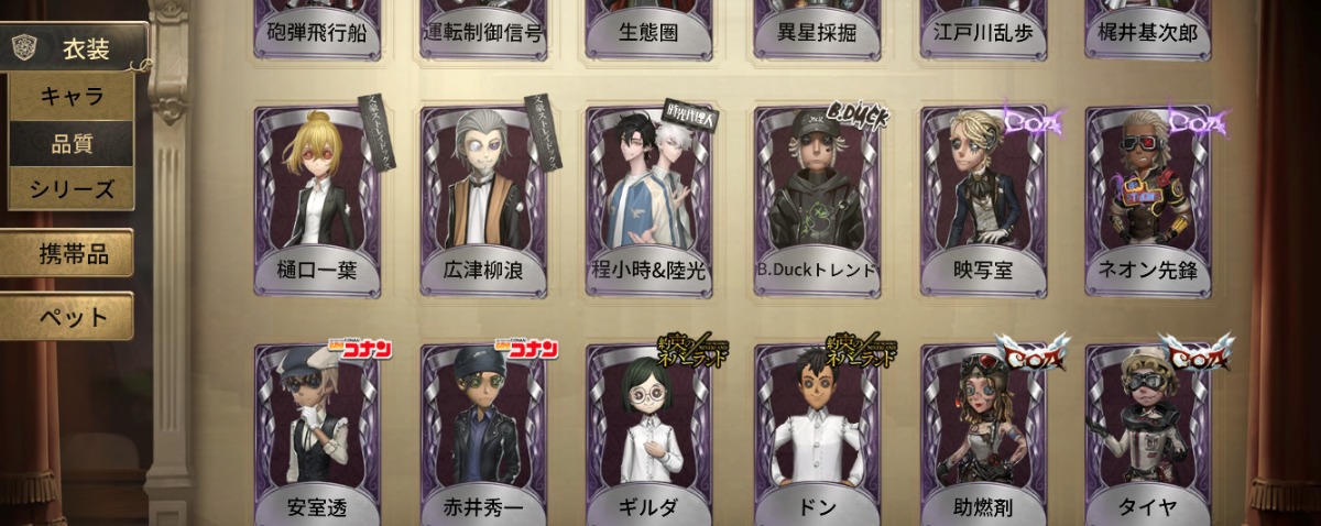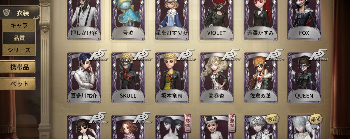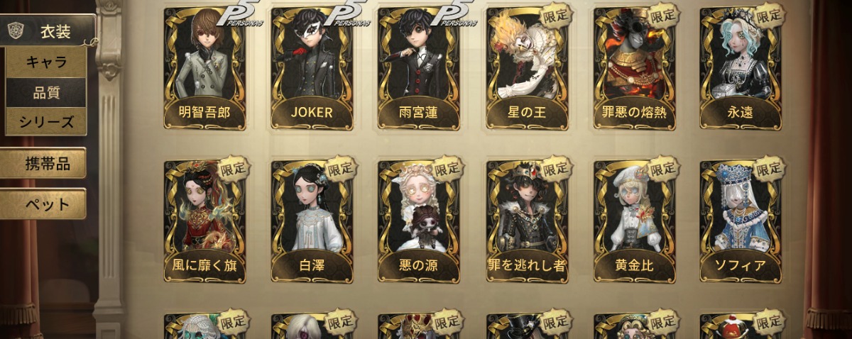 JOKER・CROW・怪盗キッド・悪の源・神の眷属・東風遙など所持