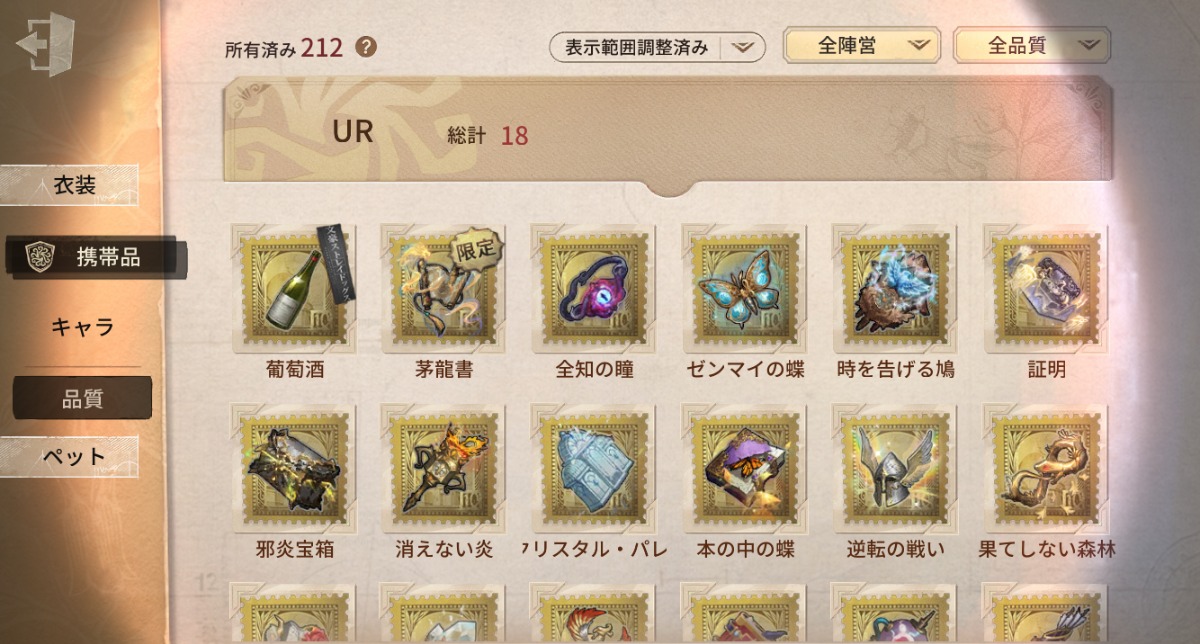 フローライト・運のみぞ知る・紅の騎士・罪悪の熔熱など所持