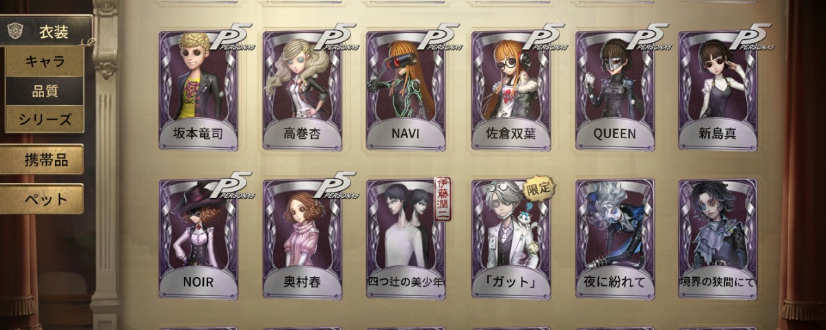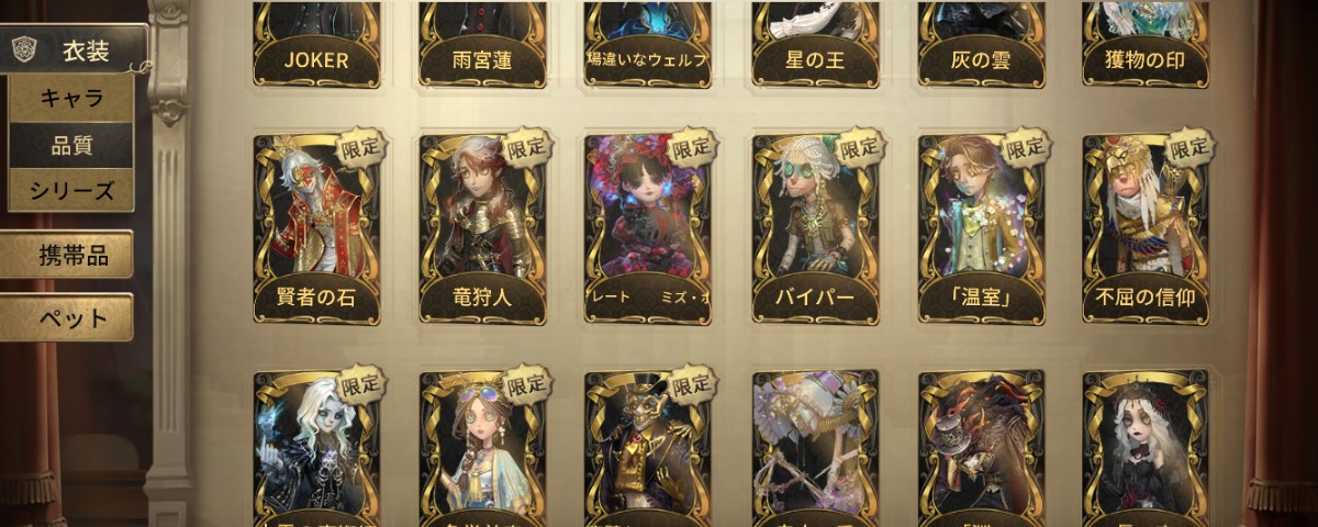 LR衣装2種・JOKER・CROW・星の王・灰の雲・バイパー・ガットなど所持